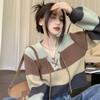 Stripe Contrast Lace Knitted Sweater Women Autumn and Winter Casual Design V-Neck Loose Short Sleeve Cardigan Sweater Female Top