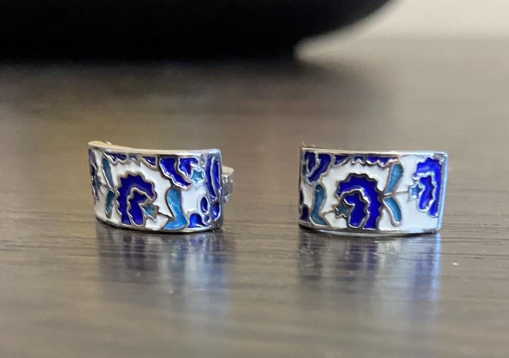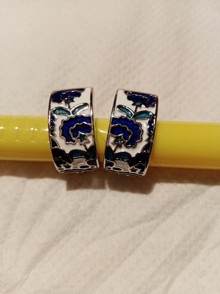 Classic Earrings for Women's Handmade Blue Enamel Flower Earrings Shape Earrings Fashion Party Jewelry Women Earrings