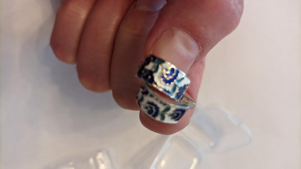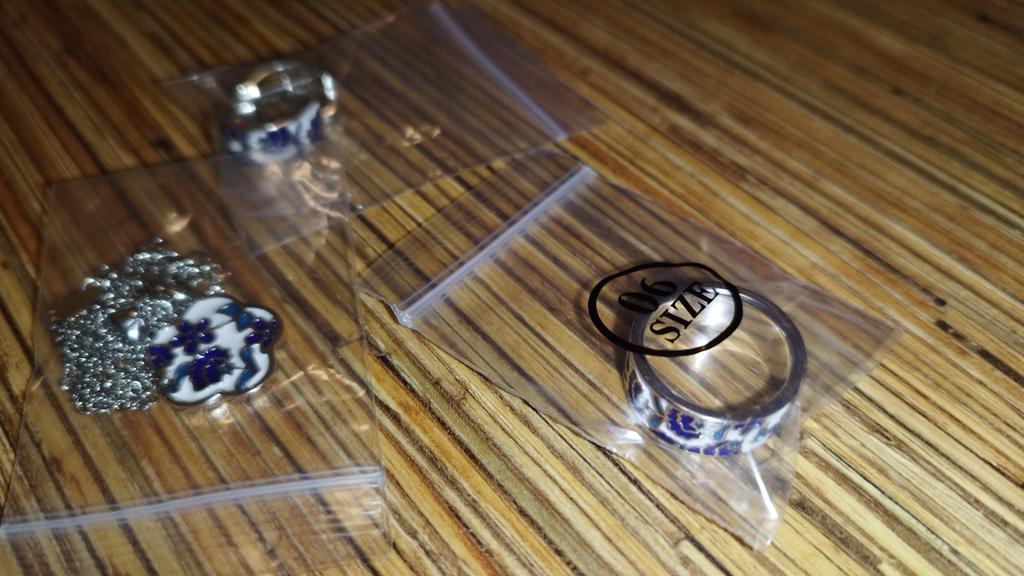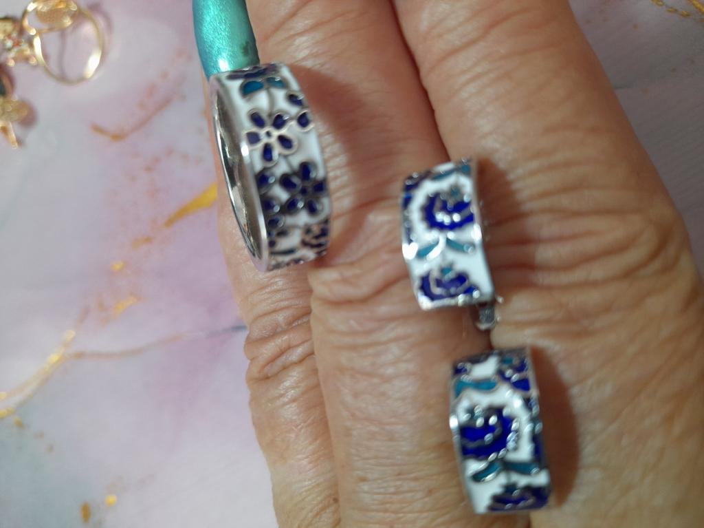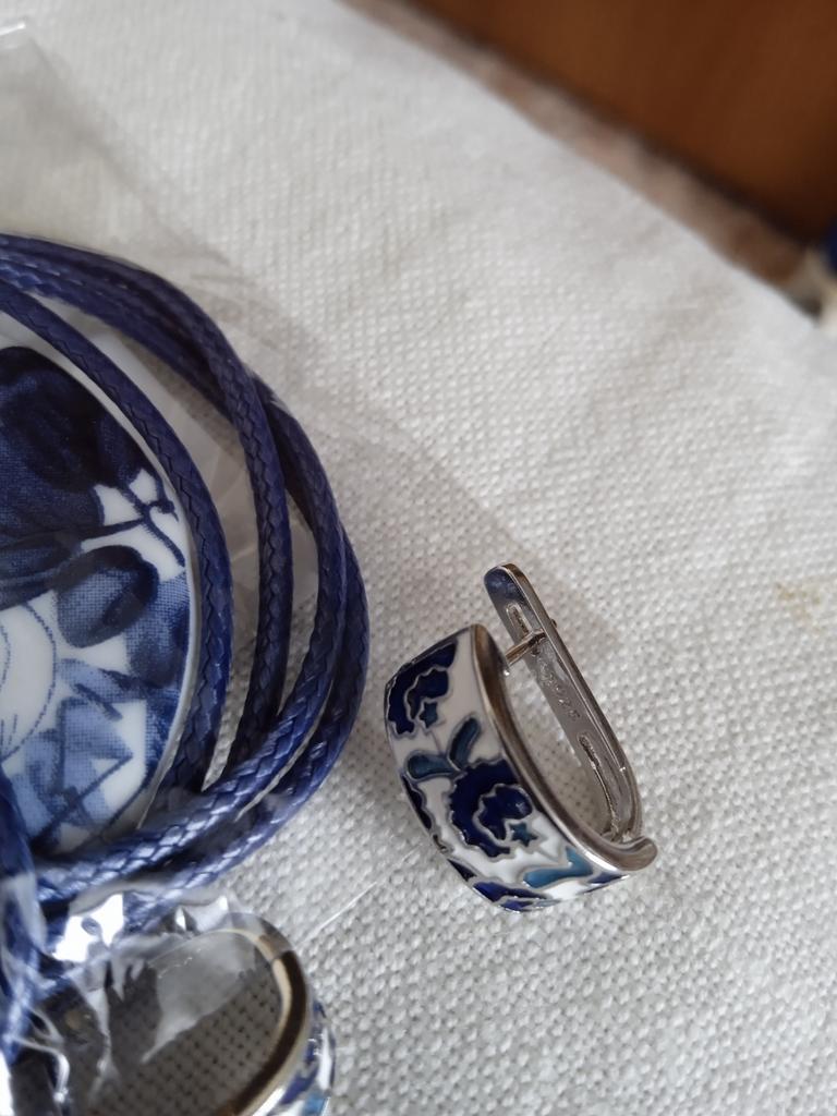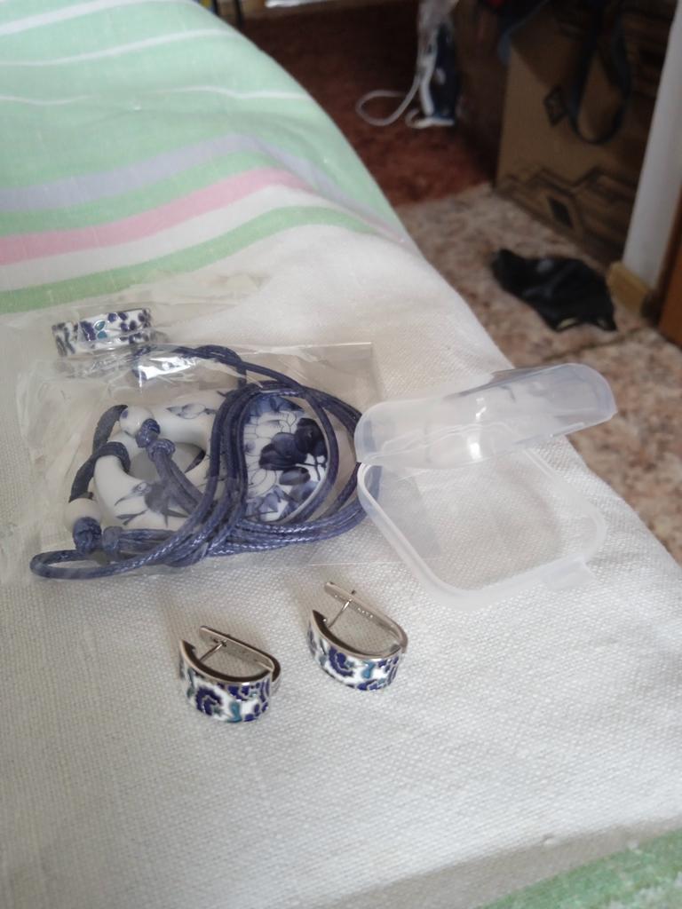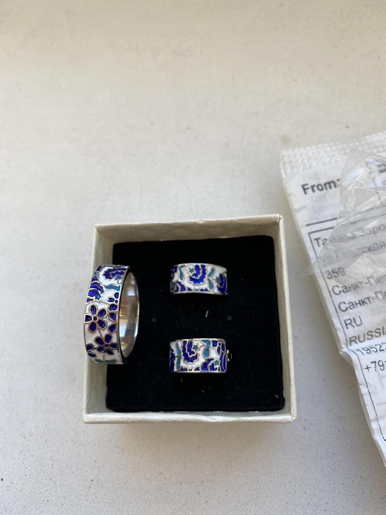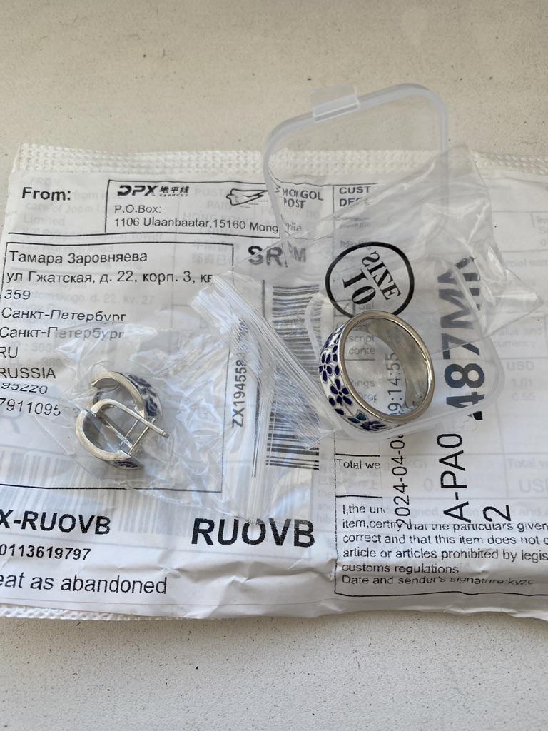 Good afternoon, I received the goods in a month. The earrings and the ring were in the same package. Beautiful jewelry. The earrings are too light, the beige ring is massive... neatly made, the clasps on the earrings work.