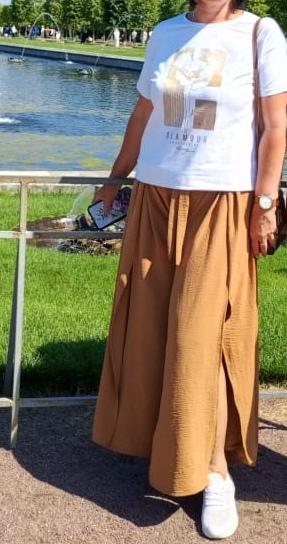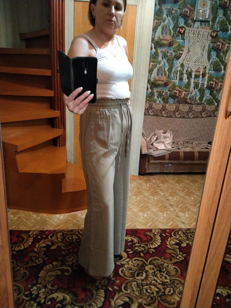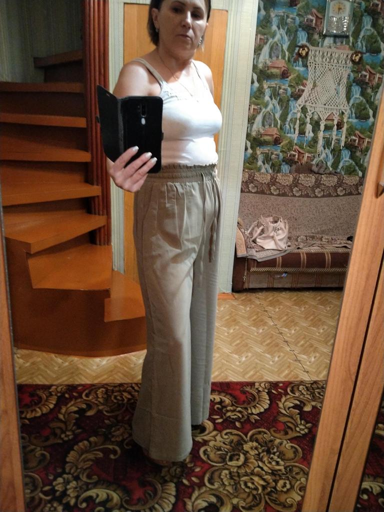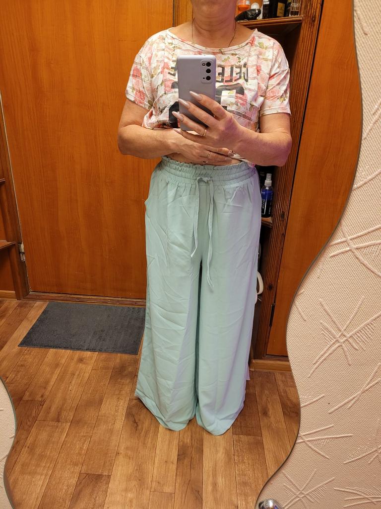 The color is beautiful, just as I wanted. The pants are wide, almost a skirt-pants. I took M - this is my size. I don't like the elastic at the waist, but this is a summer option.