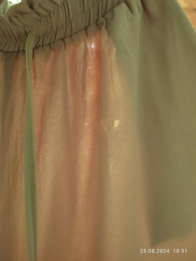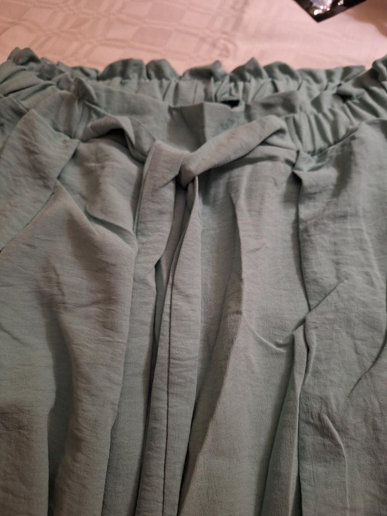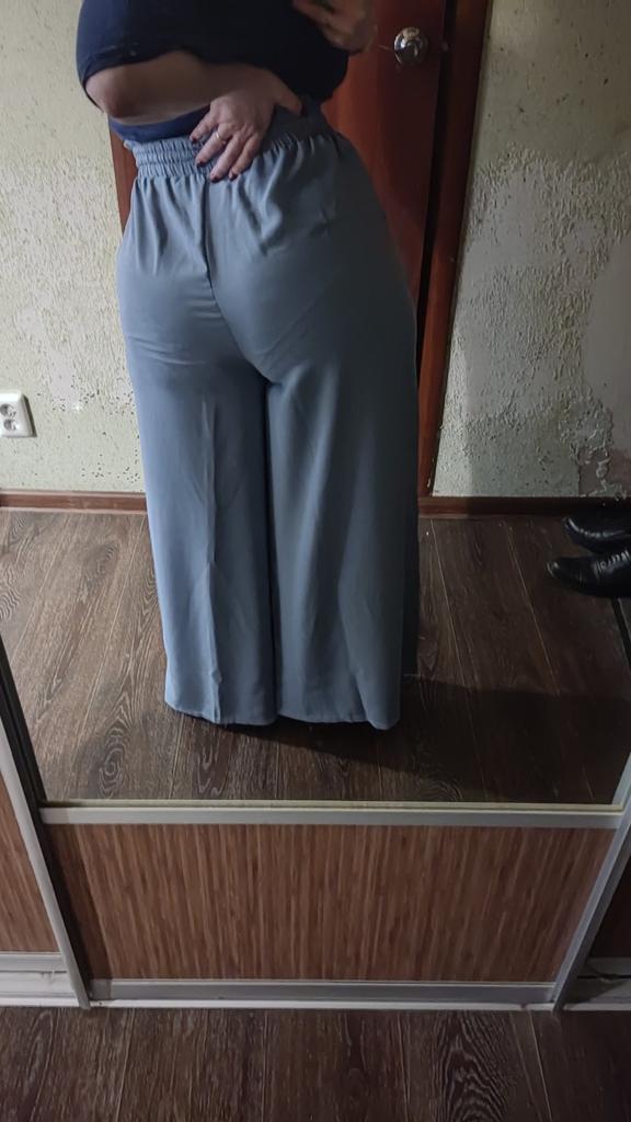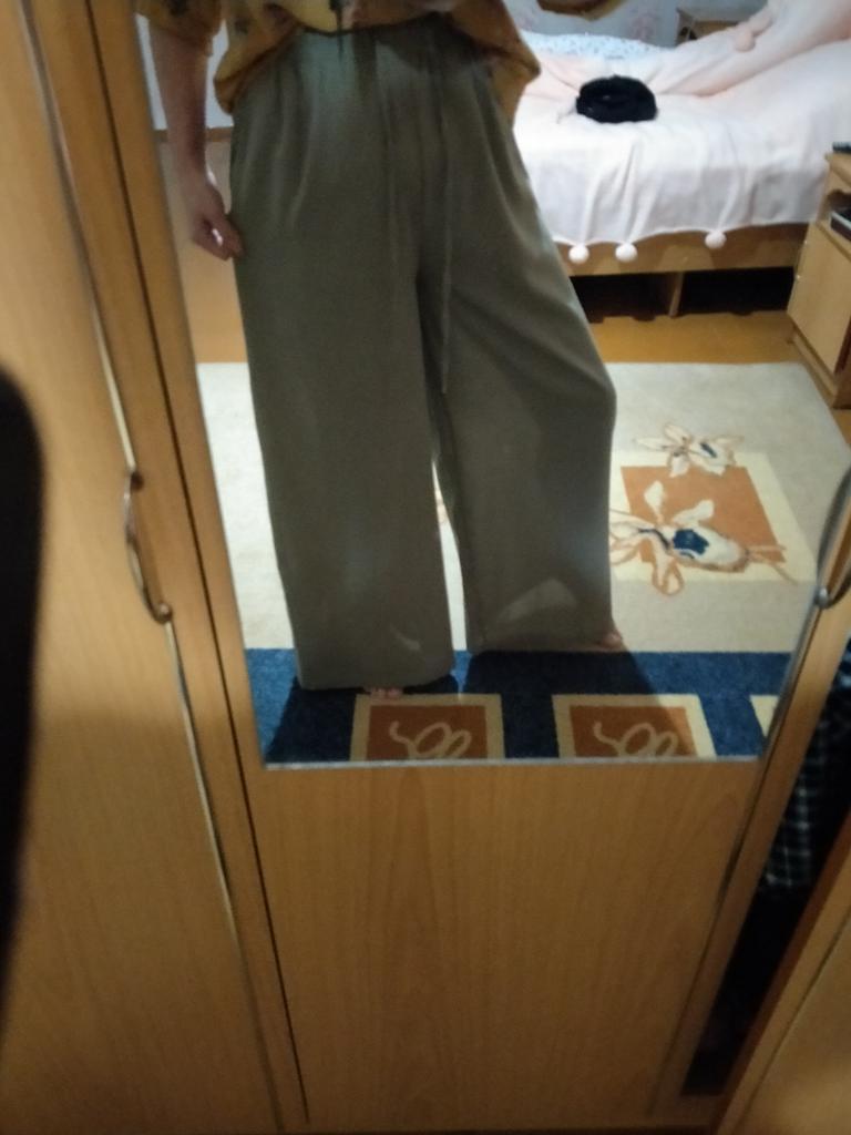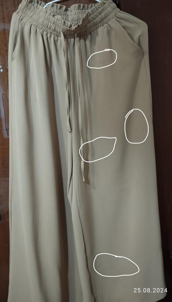 Everything would be fine, but... the fabric on 1 leg is defective both in front and in the back, it looks like dirt (stains in the fabric) and not as wide as in the photo (photo: skirt-pants), but really just wide pants. The fabric is nice