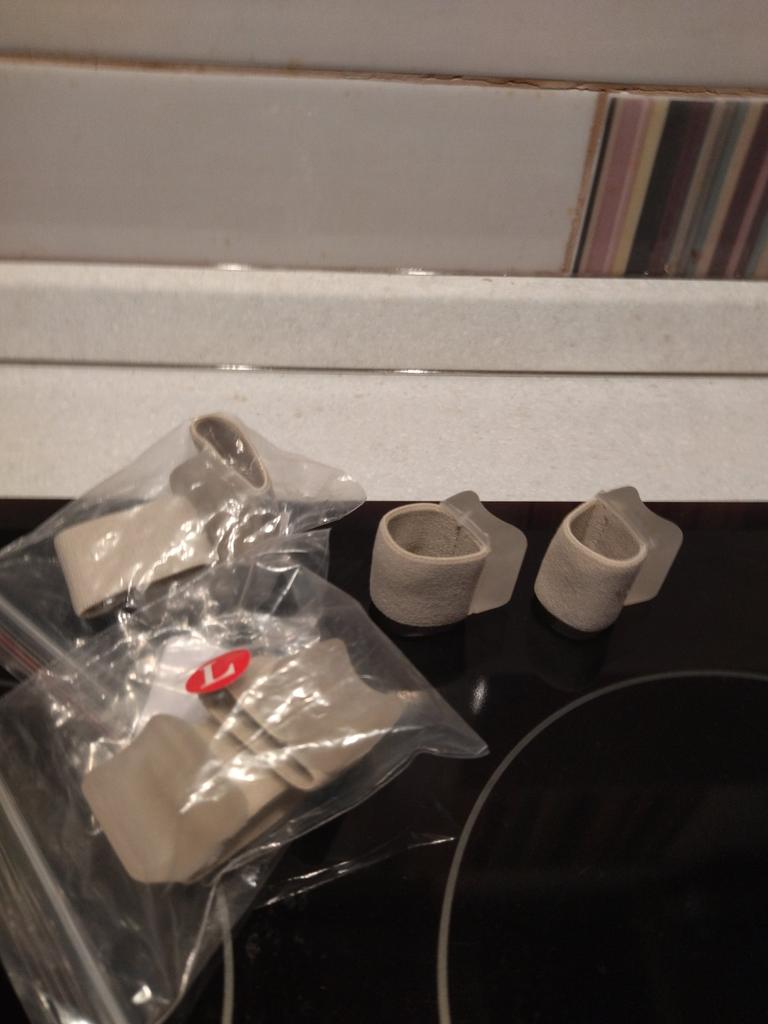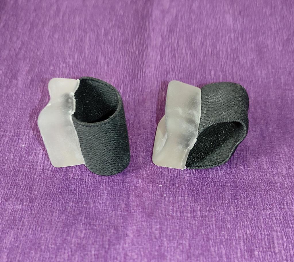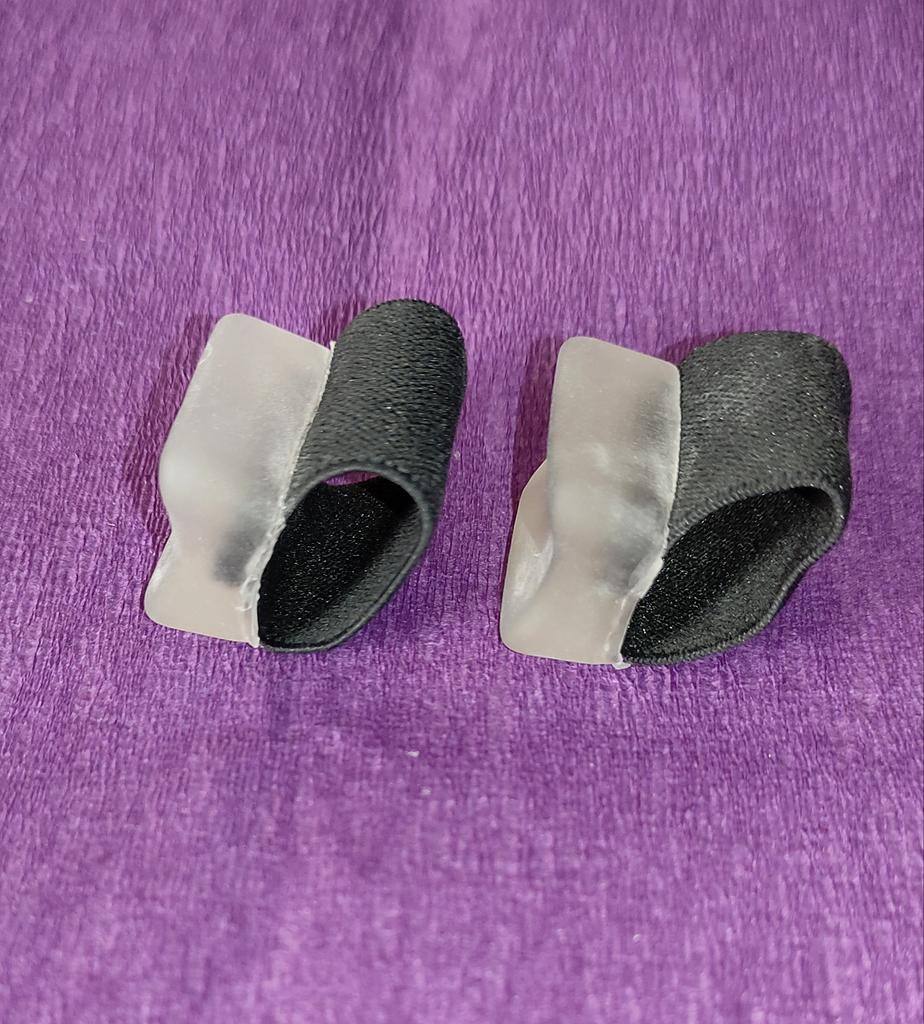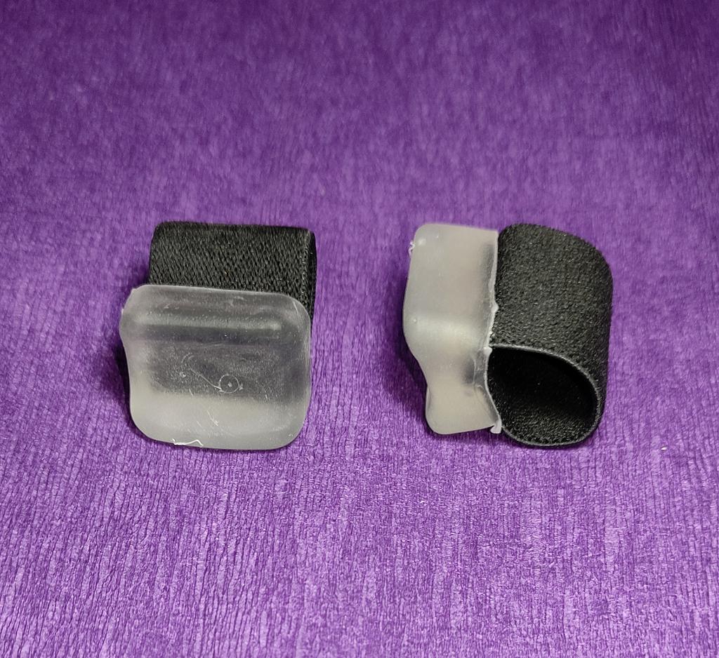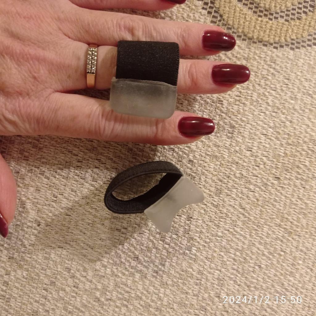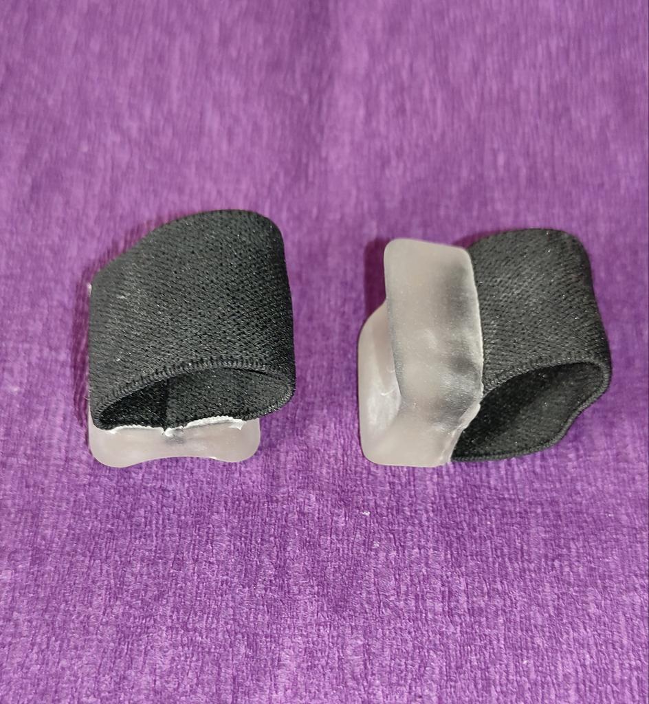 ⭐Elastic bands for fingers, size - L⭐ I ordered two sizes at once to understand which would fit better, in the end the S fit better, but these aren’t bad either. There is nothing to complain about in terms of quality👍 Separating your fingers if they find one another, these clamps help✅, their material is elastic and comfortable, does not deform✅. They can also be washed, they are reusable, which is also an advantage👍.