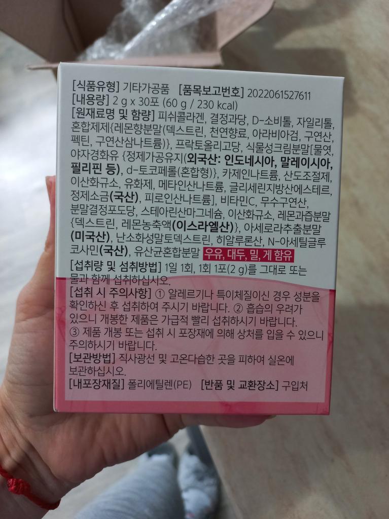 I received collagen-30 sachets in a package. Starting tomorrow I will start taking the drug. I hope for positive results.