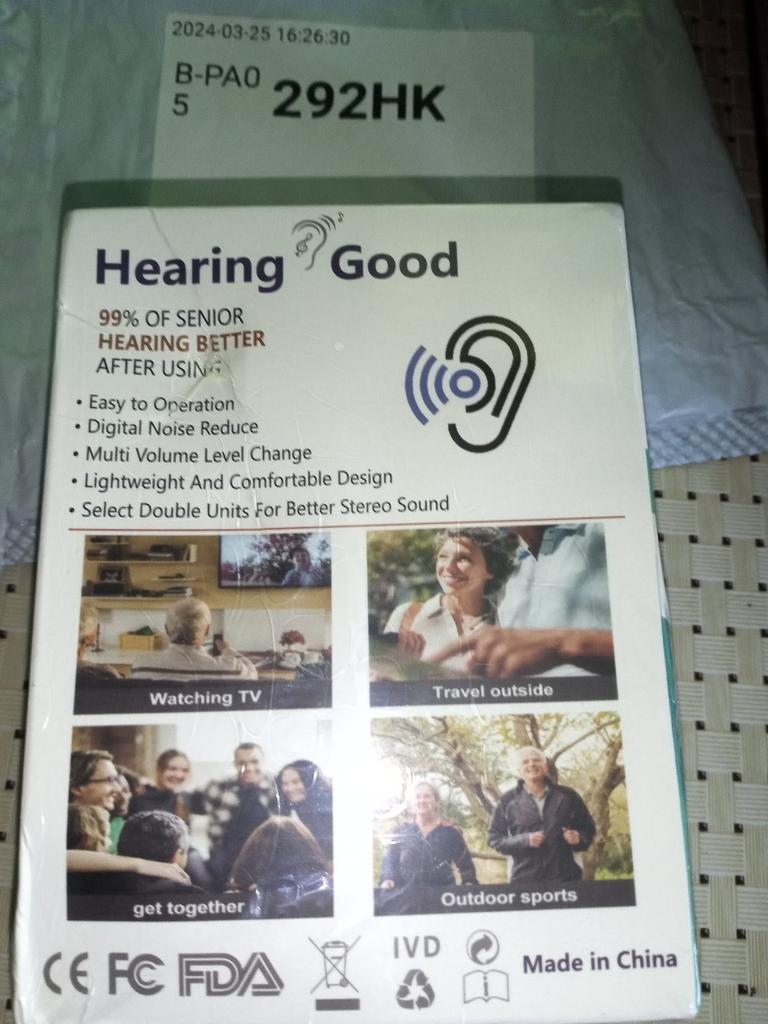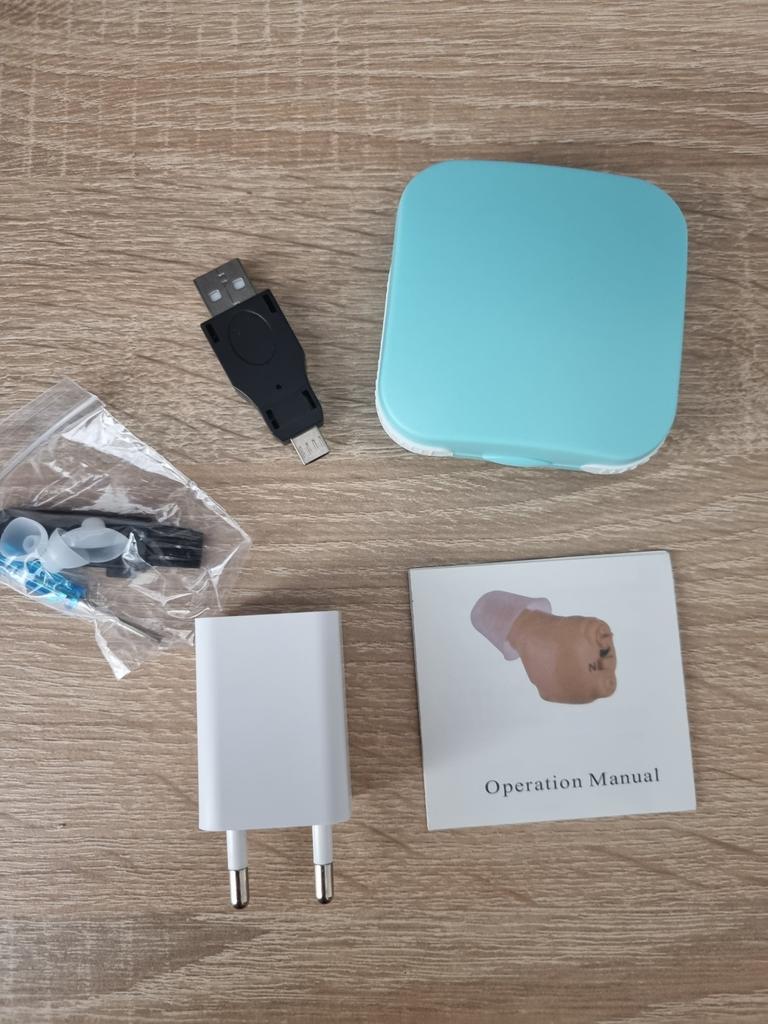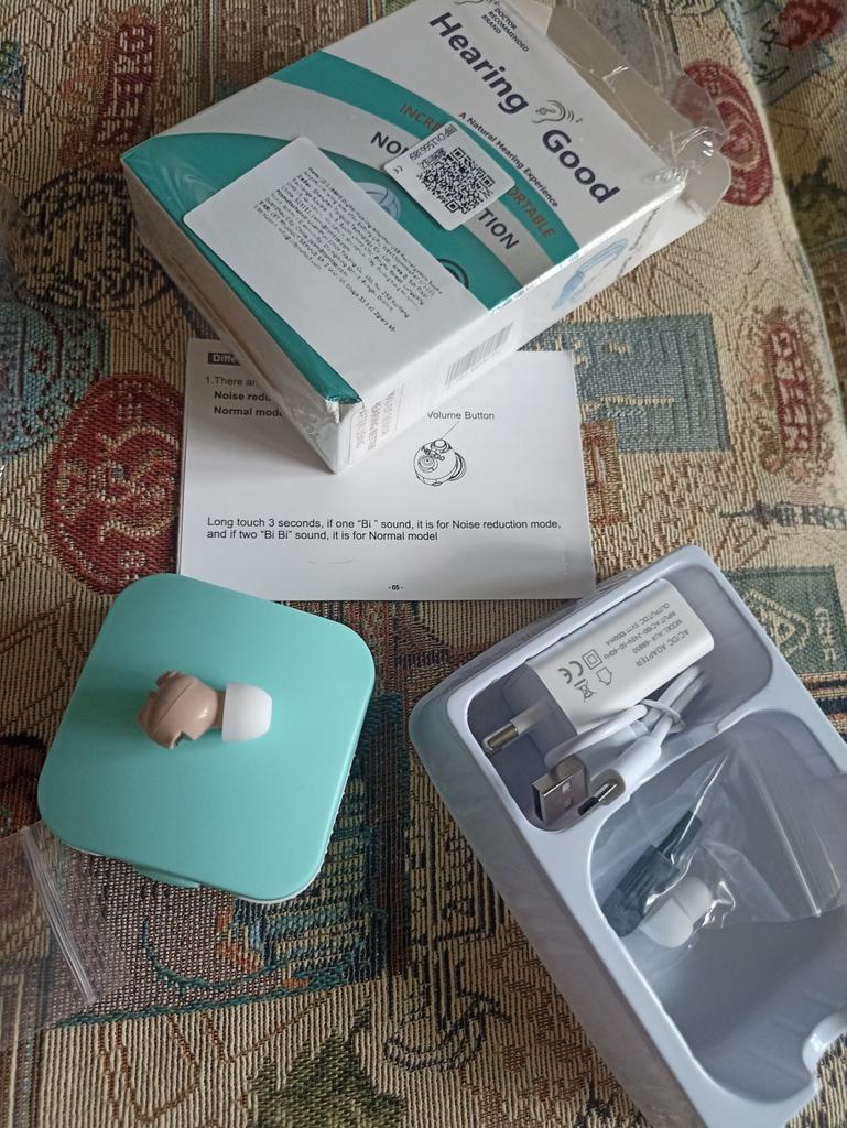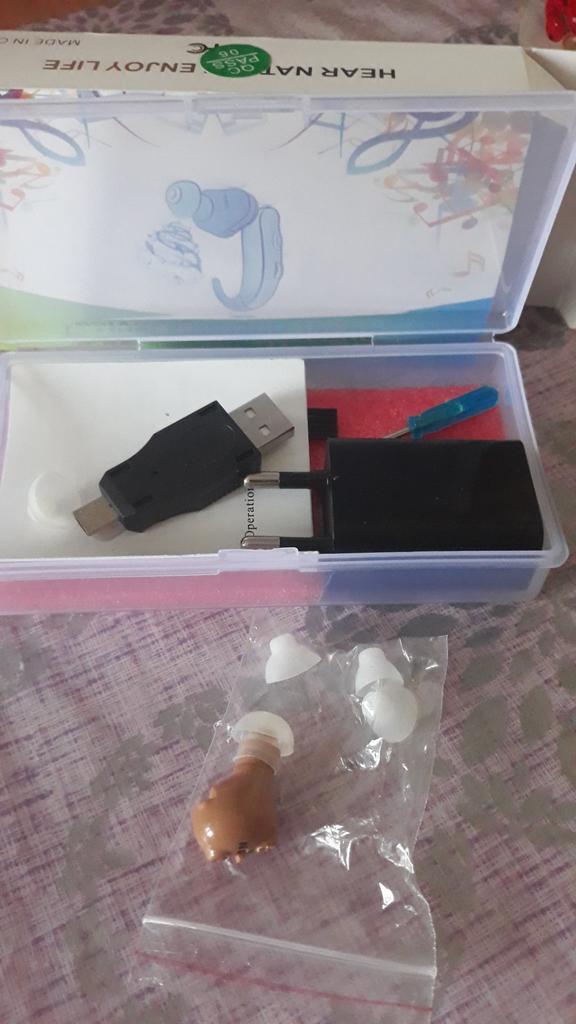 It is a headset for those with hearing problems. The quality of the material is quite acceptable. According to what the person who tested it tells me, it is not a great hearing aid because sometimes you hear whistling. It is very comfortable to wear, you will hardly notice that you have it in your ear. For price and quality I recommend it. 👍👍👍 😉 👍👍👍. 📦Package Content: A hearing aid A USB charging adapter. A charger. A small tool. A small cleaning brush. Three silicone protectors. Carrying case. User manual. 👍Pros: Delivery to Spain in 22 days.✈️ Well packed for the trip. Excellent presentation of the product in its box. It has an acceptable sound. The quality of the material is acceptable. Battery with good life. Very comfortable to wear, you will hardly notice that you are wearing it in your ear.. 👎Cons: According to what the person I gave it to tells me, it is NOT a great hearing aid, because sometimes you hear whistling sounds.. .