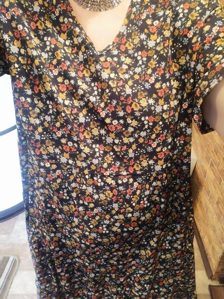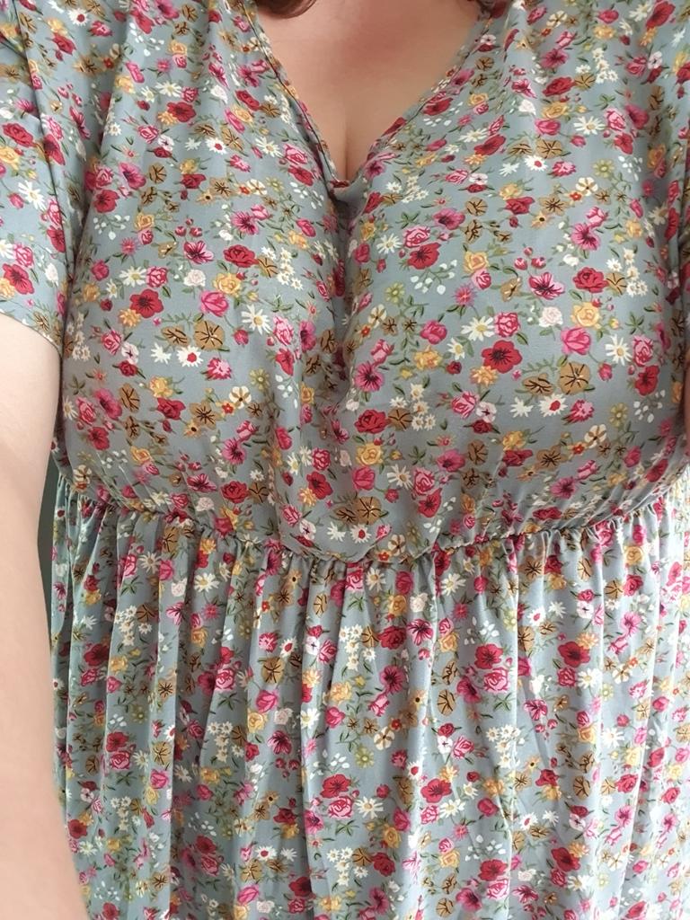 Well-cut dress in printed fabric that is greener than in the picture, but it's pretty.