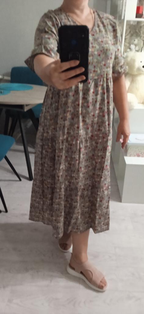 The dress fits, size 48 L, thank you Joom and I recommend it!