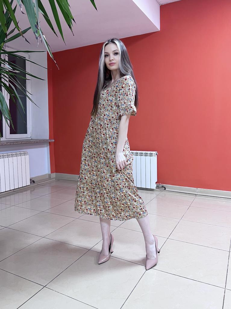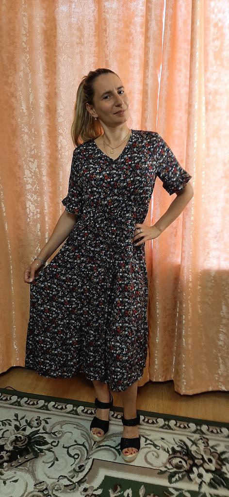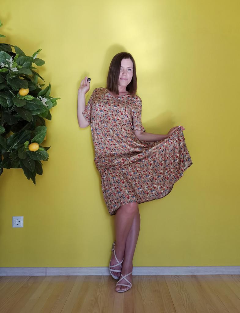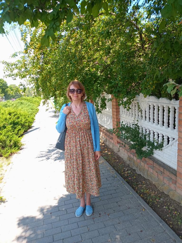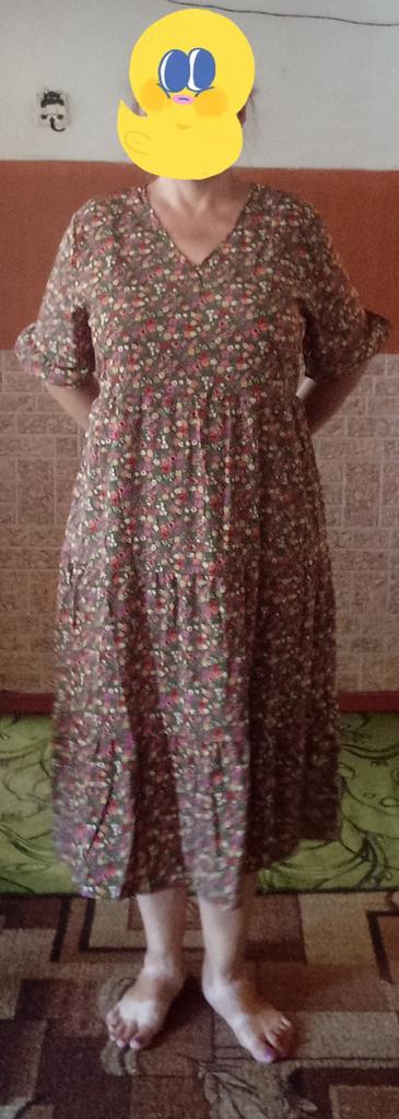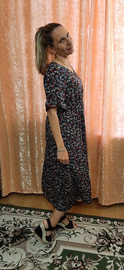 The dress is cool, cheerful, not cotton, but you don't sweat in it. I like that you don't need to iron it, it dries instantly after washing. I'm very happy.