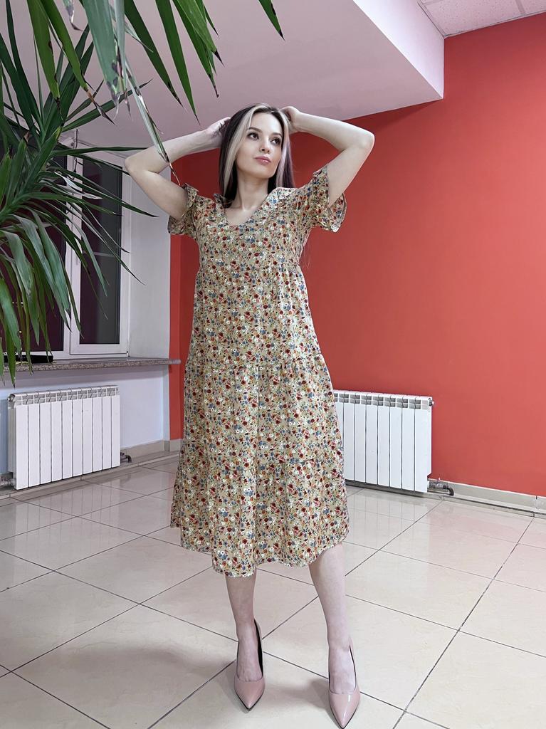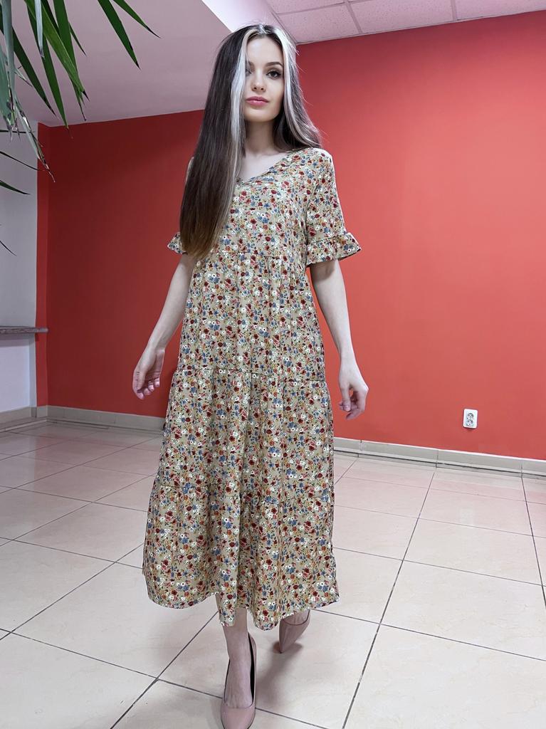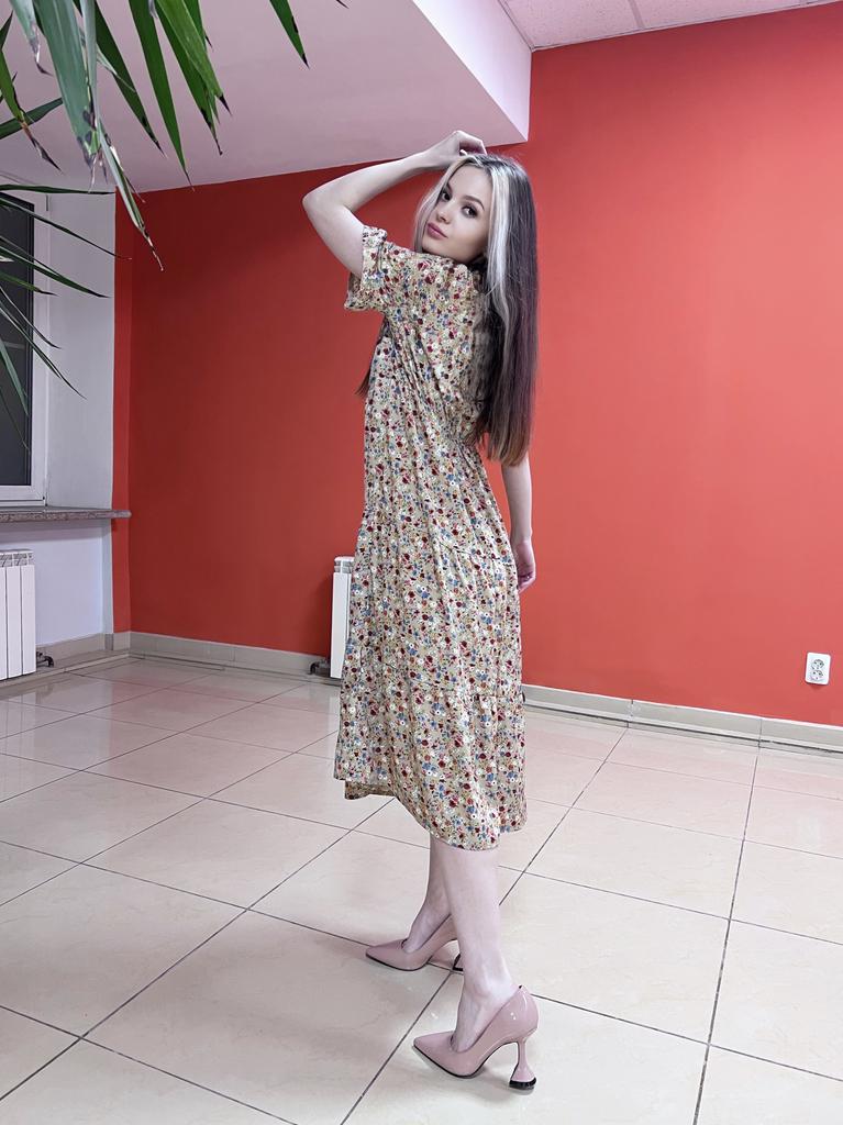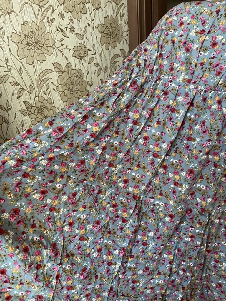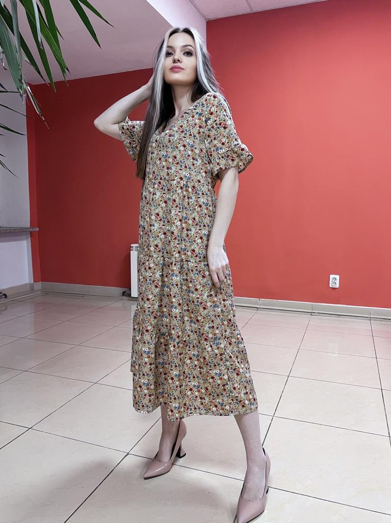 The dress is cool, cheerful, not cotton, but you don't sweat in it. I like that you don't need to iron it, it dries instantly after washing. I'm very happy.