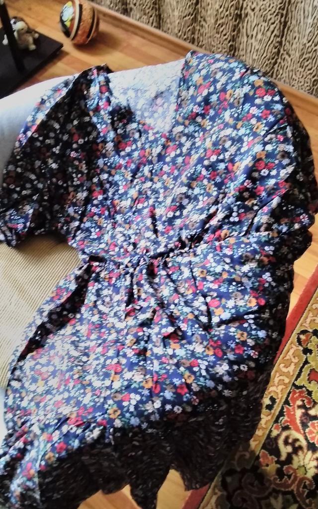 It looks like a grandma's robe on the figure. Sewn 2 sizes larger.