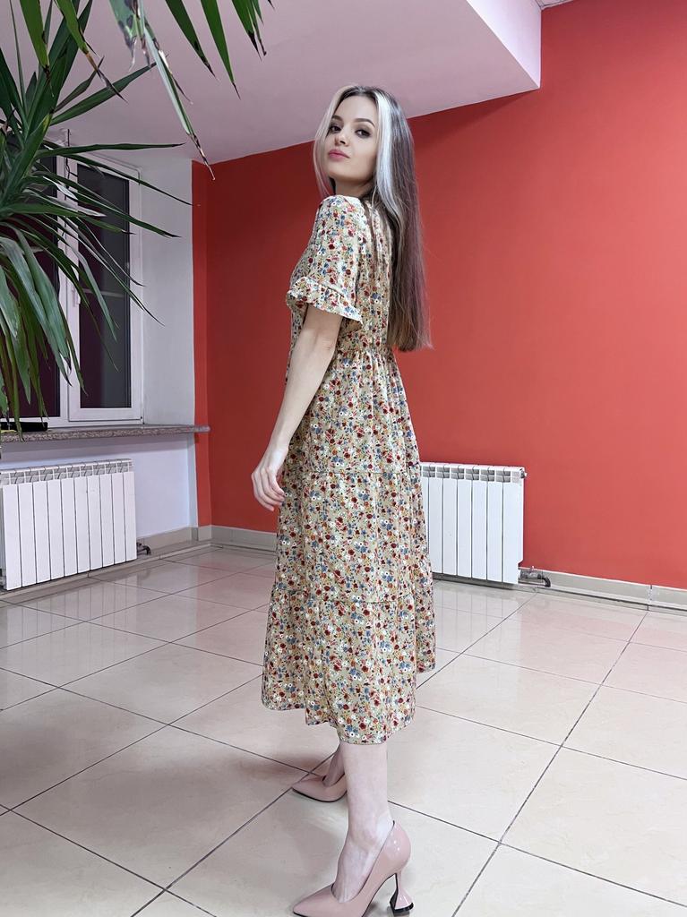 Expected to be brighter. At first glance, an interesting beautiful dress. Perhaps there are extra ruffles on the sleeves, most likely I will remove them.