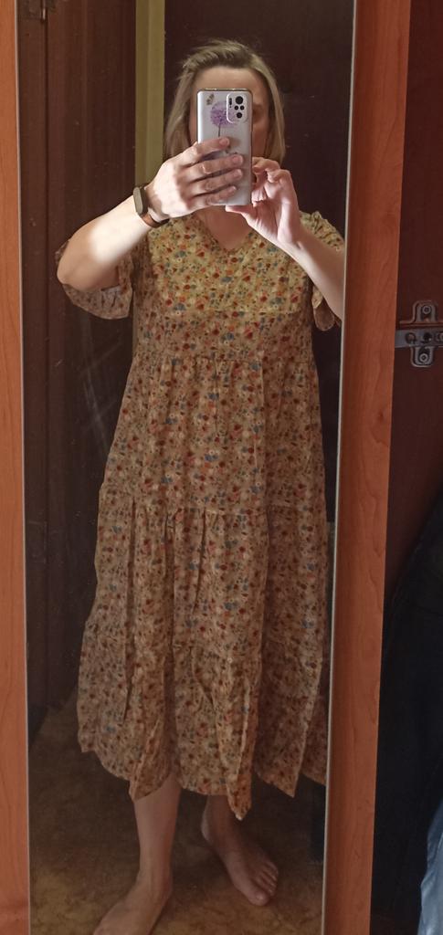 ♡ Cute flounce dress (wrong delivery) ♡ 💥𝗟𝗶𝗲𝗳𝗲𝗿𝘇𝗲𝗶𝘁 3 weeks 💥𝗟𝗶𝗲𝗳𝗲𝗿𝘂𝗺𝗳𝗮𝗻𝗴 The scope of delivery includes 1 dress in the corresponding colour. It is available in 5 different colors In sizes S, M, L or XL. I ordered it in apricot in size S. I was delivered a completely different dress in cream color with brown dots on it. I wear size 36 to 38. I weigh 63 kg over 172 cm. Bra: 75D The dress fits me perfectly because it is very stretchy👍 💥𝗤𝘂𝗮𝗹𝗶𝘁ä𝘁 The dress is opaque at the bottom. Unfortunately, my top shimmers through slightly (see video). Several levels or layers of fabric on the lower part, so that no underwear can be seen shimmering through. The fabric isn't particularly stretchy, only an elastic band is sewn into the waist area... see video. The dress is about mid-thigh on me. For material composition : 65% COTTON 35% POLYESTER I think the dress looks very nice with a belt on the waist.. as I wear it in the photos. Unfortunately my waist is a bit high so it looks more like a babydoll dress to me. The neckline can be worn either in the front or in the back, as I do in the photos 💥𝗙𝗮𝘇𝗶𝘁 Unfortunately I was delivered a completely different dress than what I ordered but a nice letter was included as an apology. Nevertheless, it is a beautiful summer dress with a subtle polka-dot pattern 😍