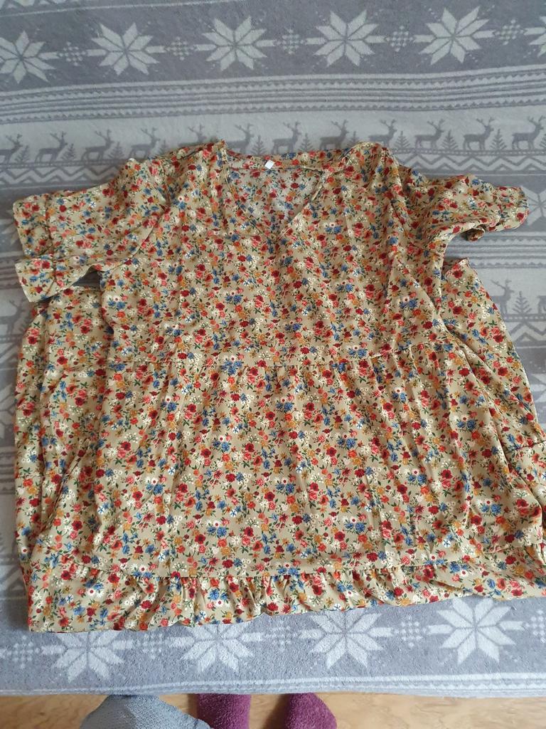 It doesn’t quite look like the photo, it’s too wide, the color is darker and there are ridiculous frills on the sleeves. Two sizes larger than my 48. It's a pity...