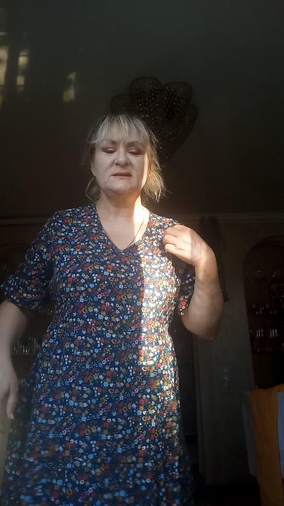I received my dress that I was waiting for, I had such a dark one, and this is a royal blue color. A double feeling, it seems so nice and the color is delicate and the fabric is pleasant, light, but I am not used to such a model and again the elastic band in the front. But once I wore it, it was very nice and light.