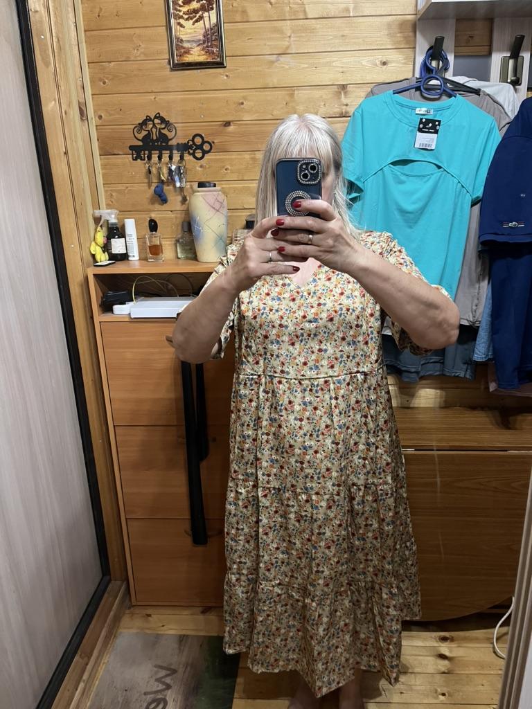 SHORT SLEEVE summer dress with a beautiful floral print 👗 🔆 🔆Delivery time 🔆: 9 days to Germany. Awesome!!👍👍🚀🚀🚀🚀🚀🚀🚀 🔆Scope of delivery 🔆: The scope of delivery includes a dress 👗 in the appropriate color and size. There are 3 colors (blue, green, apricot color) to choose from 👌👌🥳👗. It is available in sizes from S to XL. The dress 👗 fits me great! Normally I wear dress size 36 (s). I weigh 55kg over 167cm. I bought the dress in blue in size S and the color is exactly as shown. But the color is a bit different outside in the sun 🌞 and in the shade, like most of the time.👌 🔆Quality 🔆: The dress is casual and opaque, with a small neckline. The product is true to size 🔝🔝🔝🔝 The dress is about mid-calf on me. Very light, soft fabric👍✅️! About the material composition: 35% cotton and 65% polyester, but it feels very comfortable on the skin. Perfect for summer!!😉😉😘🔝👍 🔆 The dress 👗 will be perfect for vacation. 👍👌👌👍 Thank you Joom and seller Hi Dawn!😘5 stars! 🌟 I would be happy to recommend the dress!👍