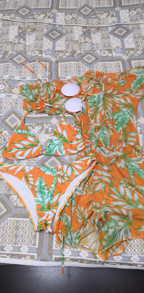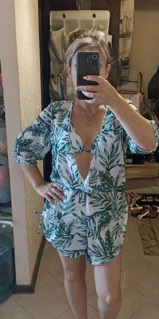 Bikini wears Strand- Jumpsuit 👙 * 💥𝗟𝗶𝗲𝗳𝗲𝗿𝘇𝗲𝗶𝘁 3 weeks 💥𝗟𝗶𝗲𝗳𝗲𝗿𝘂𝗺𝗳𝗮𝗻𝗴 The scope of delivery includes 1 bikini consisting of panties and a top with a matching jumpsuit. The bikini is available in 3 different colors in sizes S, M or L. I ordered it in M in a beautiful green and white (the exact name is "blue"). I wear size 36 to 38. I weigh 63 kg over 172 cm. Cup size 75D. He fits me great 😁 👌 Only the jumpsuit is a bit wide. 💥𝗤𝘂𝗮𝗹𝗶𝘁ä𝘁 The bikini is double-layered and therefore opaque... I think that's good and important. In addition, it is very stretchy. The trousers are mid-waist and cut like normal panties. 👌 For material composition : 82% polyamide and 18% elastane It feels like an ordinary bikini on the skin... The cups have removable pads for a pleasant push-up effect.😉 The upper part can be individually tightened or loosened with ribbons. Hello cannot be made wider or narrower.. The jumpsuit is slightly transparent and very loose and wide cut. 💥𝗙𝗮𝘇𝗶𝘁 Very nice bikini with matching jumpsuit. You can confidently order your original size.