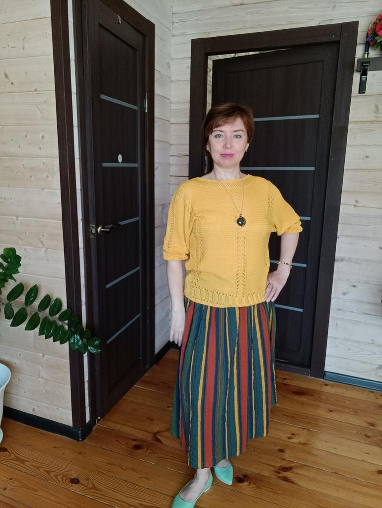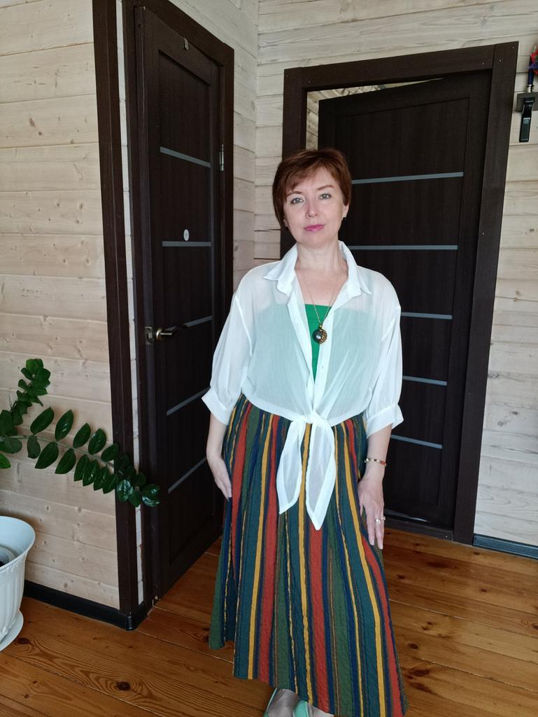 The skirt is excellent, size 48-50. Lightweight, looks beautiful