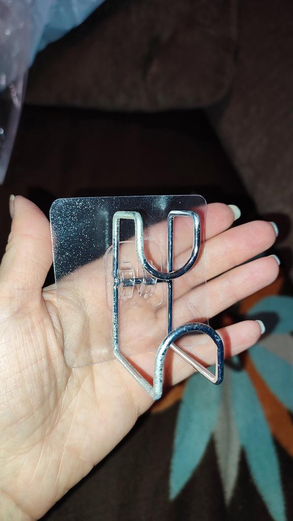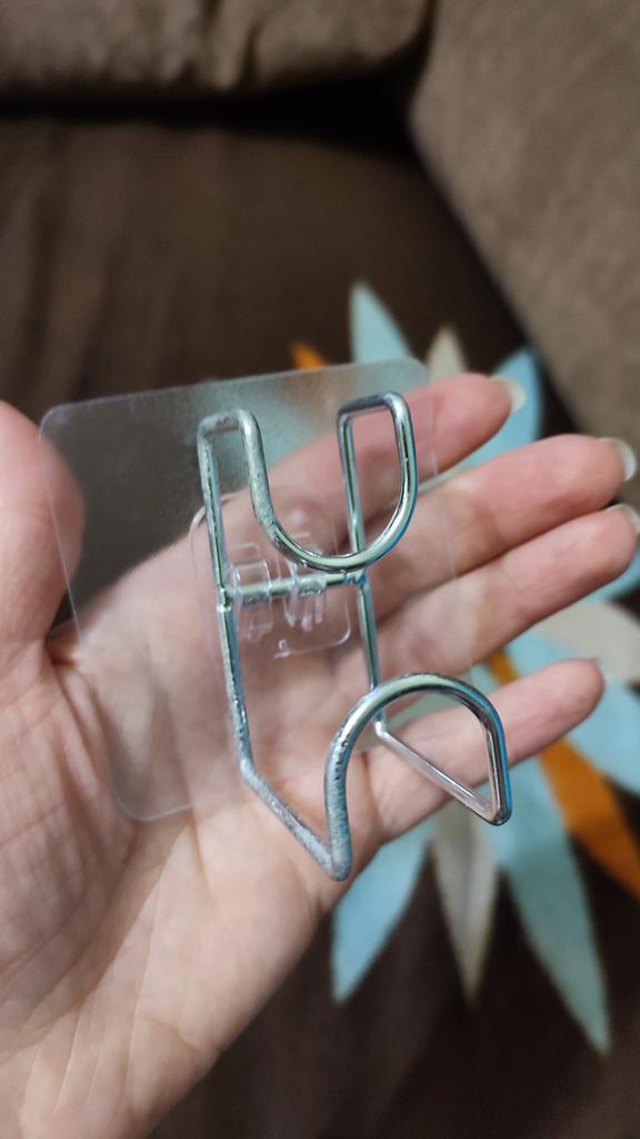 The hook is good with self-adhesive. It is useful. In order for it to stick well, it needs to have a smooth surface, like glass (I have ribbed tiles), and it needs to be cleaned and treated well (you can use acetone). I will find a place. It is useful. Thank you for the gift.