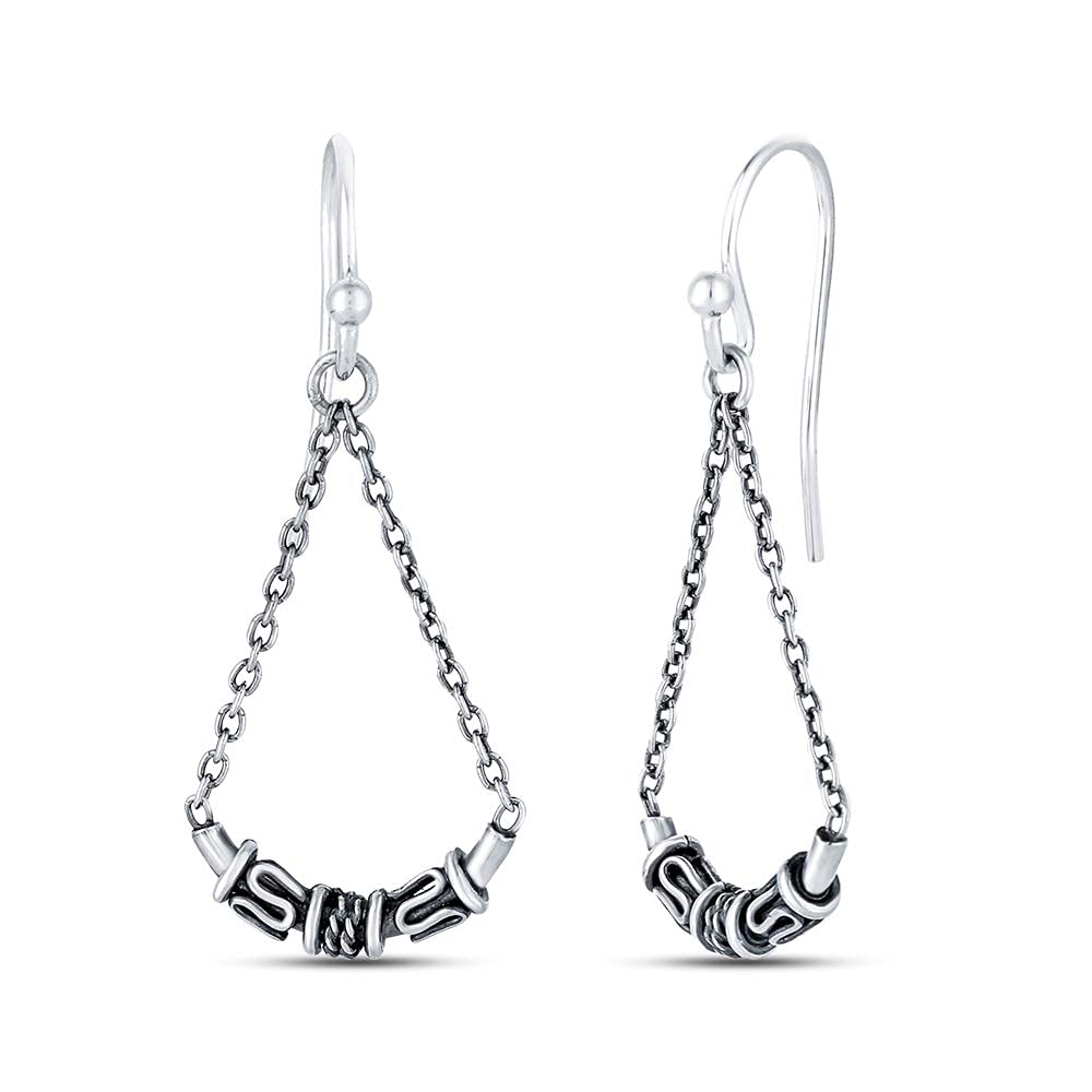 Real 925Sterling Silver Jewelry Antique Balinese Drop Dangle Tassel Earrings for Women