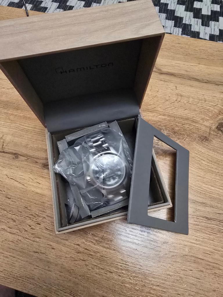 The box completely fell apart, it's like it was glued together with snot. The pillow for the watch is shiny from glue marks. The warranty card is missing. The watch itself seems okay. Original?????