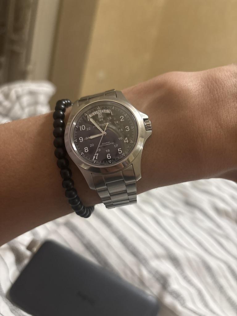 Corresponds to the description. Warranty card available. The readability of the numbers is good. Tried it on. There is room for adjusting the bracelet. Heavy: 150 gr. Cool. I will wear