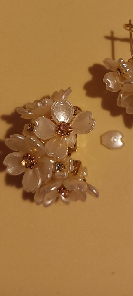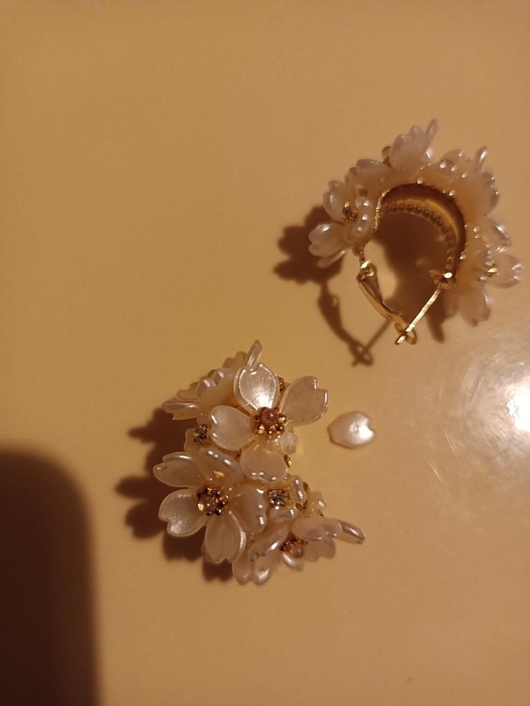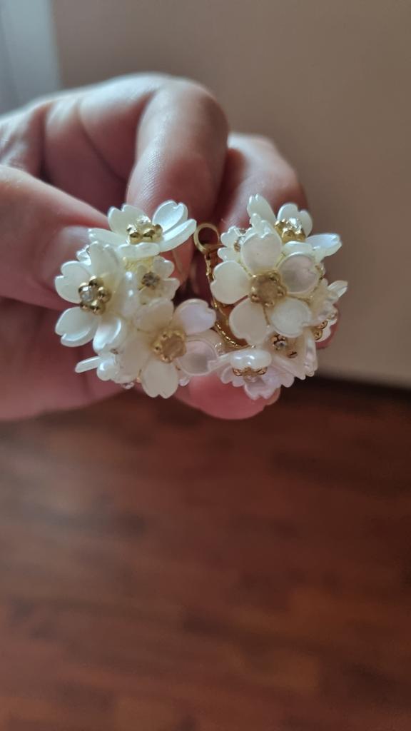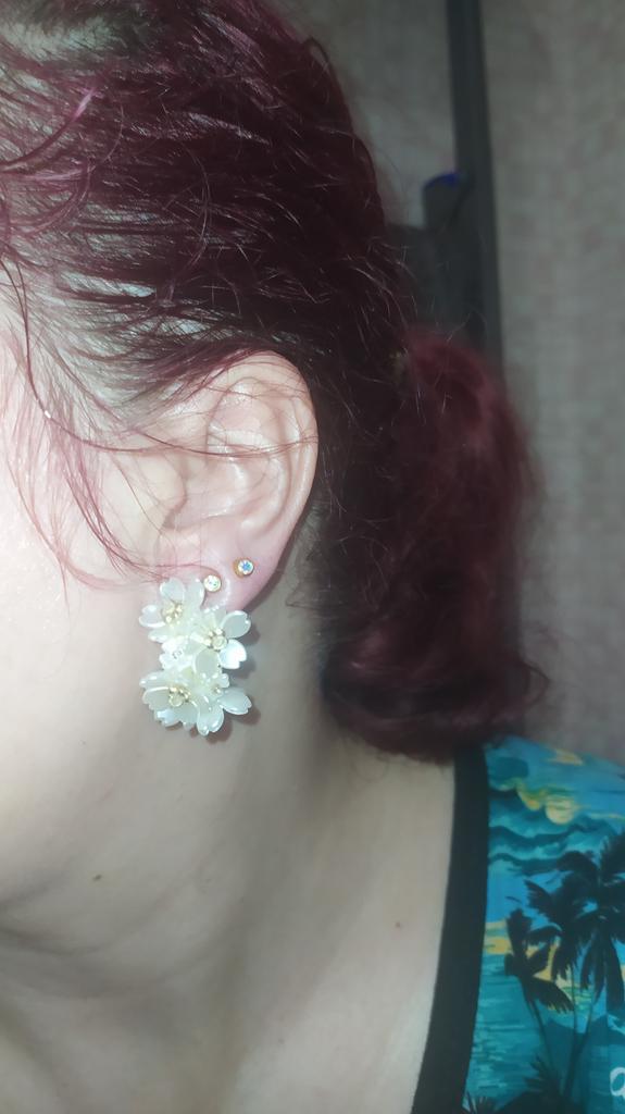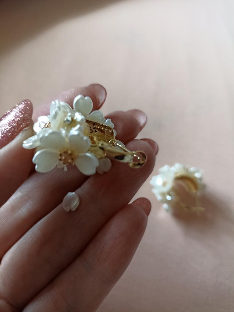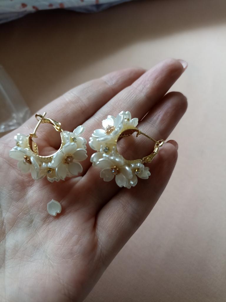 Earrings are beautiful. But the flowers hold on weakly, one fell off on the way. Also, one fastener does not work well. It is difficult to wear in the ear. When I was putting it on, the second flower fell off