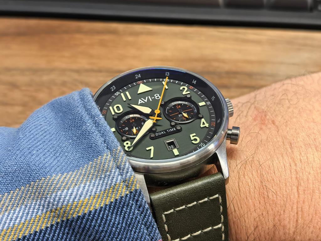 AVI-8 Hawker Hurricane Carey Dual Time Merville Green Dial Quartz AV-4088-02 Mens Watch