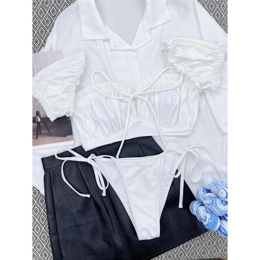 Short Sleeve Wrinkled Brazilian Bikini Women Swimwear Female Swimsuit Two-pieces Bikini Set Bather Bathing Suit Swim Lady