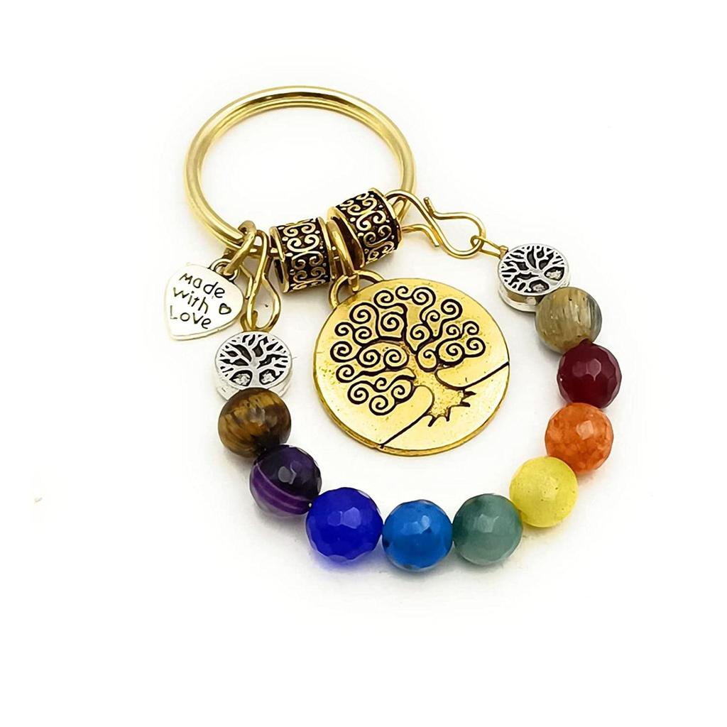 Natural Stone Beads 8mm- Seven Chakra Healing /Reiki Healing Highly Spiritual Key Chain/ Key Ring