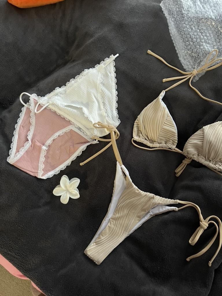 2 PCS Women's Lace Bikini Briefs Thin Belt Threaded Cotton Panties Girls Cute Lingerie Underpants Combinations