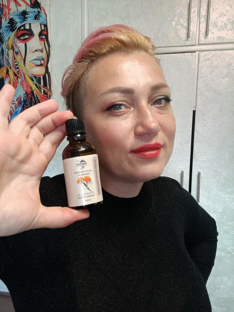 Calendula 100% Pure Natural Essential Oil Delivery time: 14 days in Italy. Package contents ☢️: The package includes a bottle of calendula essential oil 💃 Calendula essential oil is obtained from the flowering tops of the calendula. The anti-inflammatory properties of calendula oil make it effective against numerous skin problems. It also prevents swelling of the skin and soothes it to a great extent. 🚀🚀🚀🚀👍Benefits Repels mosquitoes Resists skin aging Heals ulcers Relieves cold symptoms Promotes healthy hair How to use The oil can be used as an oil diffuser by adding a few drops with water to an essential oil burner. For skin and hair application, dilute with Argan oil, Almond oil or any other carrier oil. Add 1 or 2 drops of essential oil to a teaspoon of carrier oil of your choice and mix well. ! I am thrilled!🔝👍Everything corresponds to the description. ☀️Summary ✳️: Calendula oil for massage or diffuser I recommend it!!!! 5 stars 🌟 🌟 🌟 🌟 🌟! Thank you Joom and the seller!👍☀️