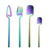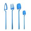4Pcs Blue Silver Stainless Steel Cutlery Set Kitchen Silverware Dinnerware Knife Fork Spoon Flatware Set Brushed Stain Tableware Utensils