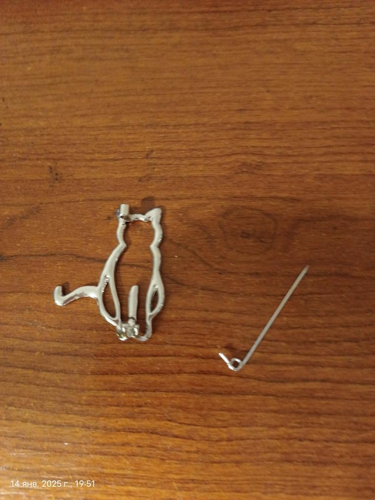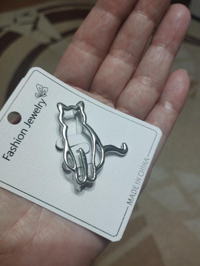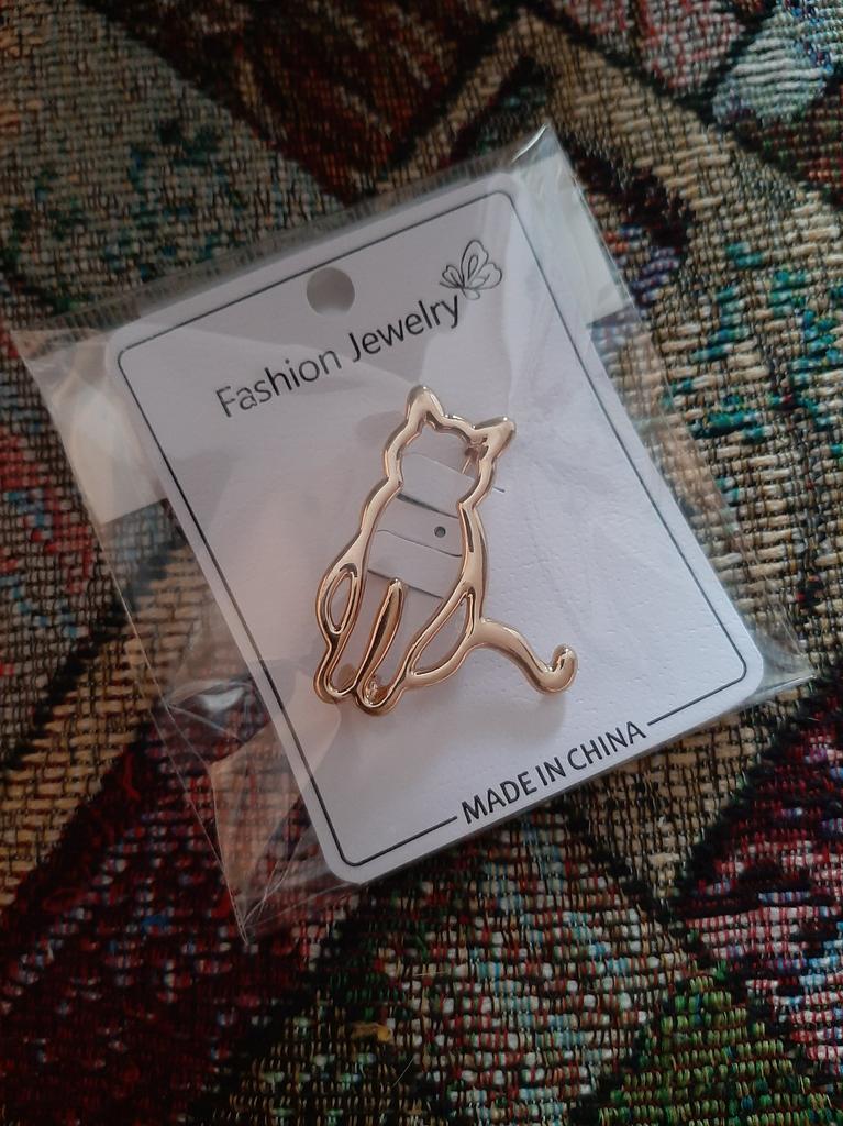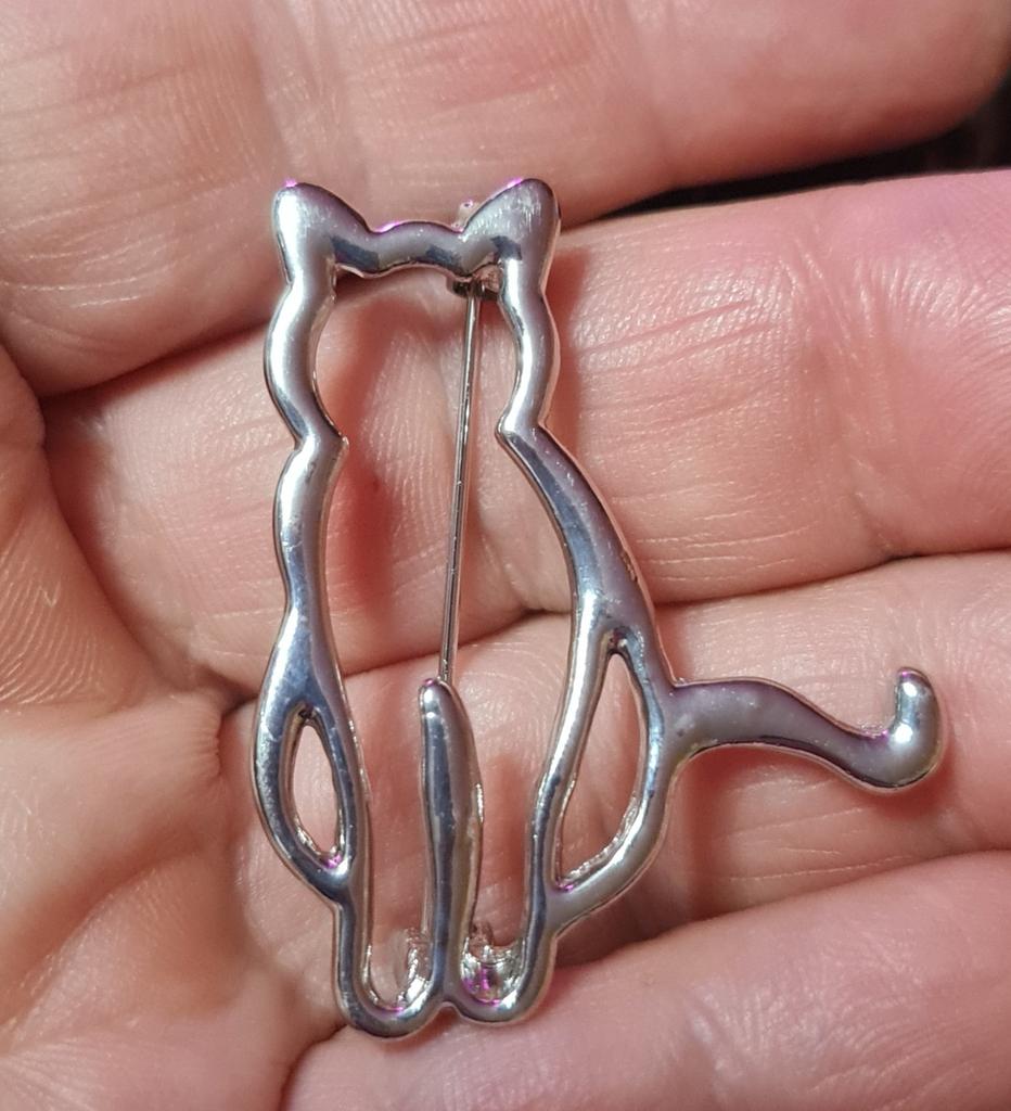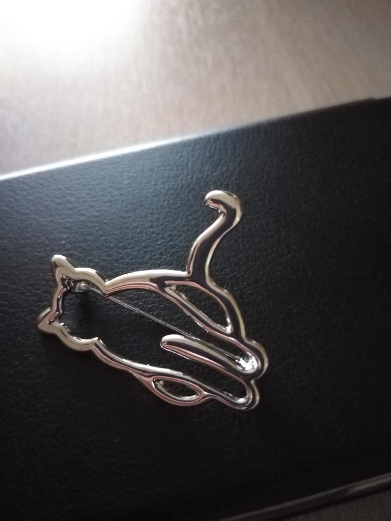 Cat brooch🐈 ✨✨✨✨✨✨ Another brooch has been added to my collection! I bought a few 😉 I have a second cat. The first pussy is covered with enamel, this one is in a different style - only contours! I like it, you can too Recommend👍