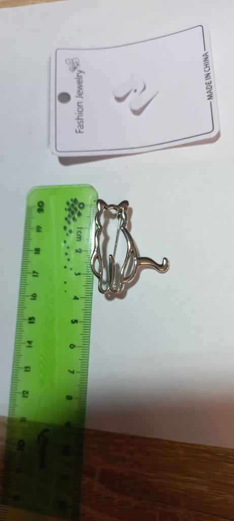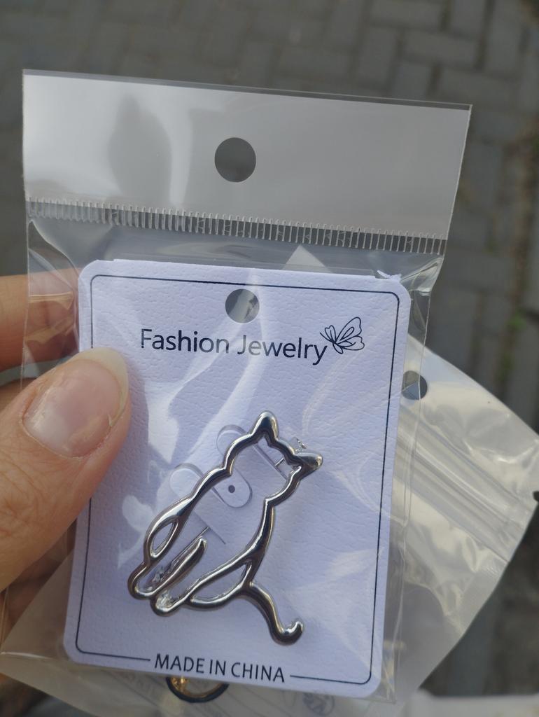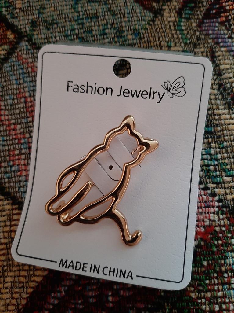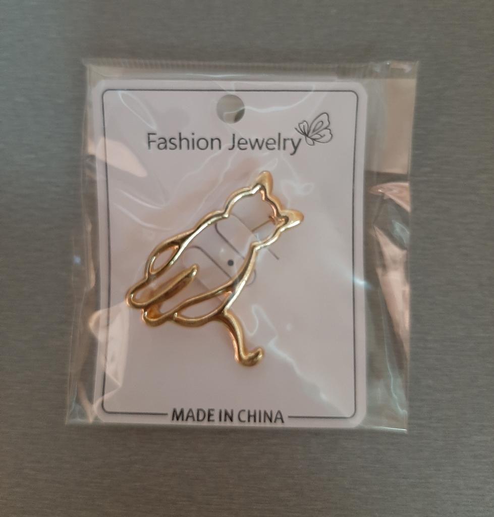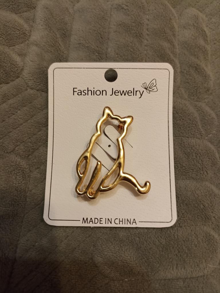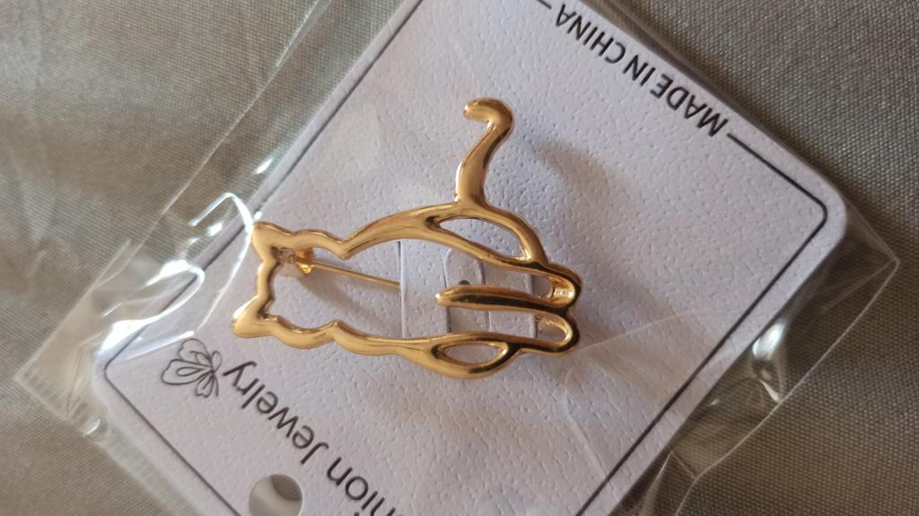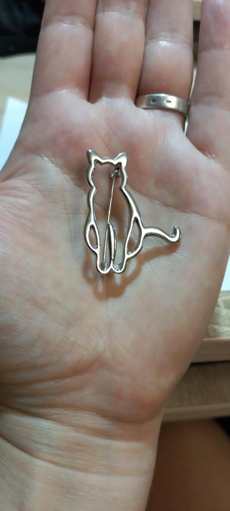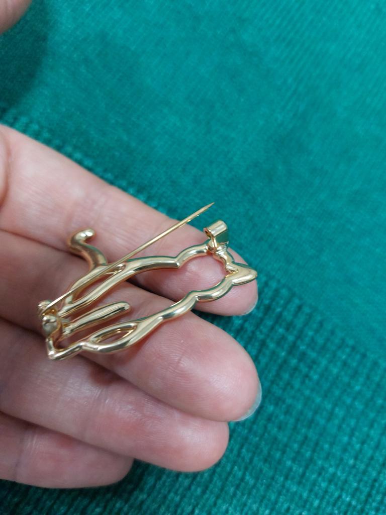 A beautiful cat, although it looks a little simple compared to many other brooches and not very fancy, but it looks like a gold brooch, so in addition to a beautiful cute cat that will look great on clothes, it will not feel like cheap jewelry. The brooch fits clothes made of coarser material, it will sag on thin ones.