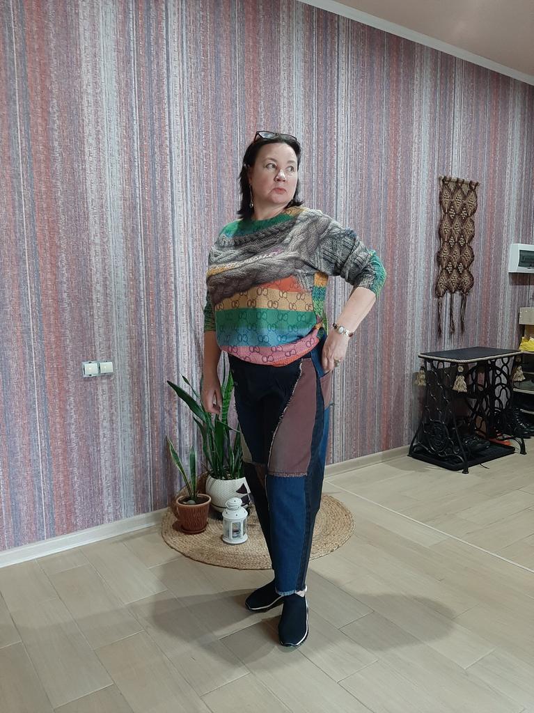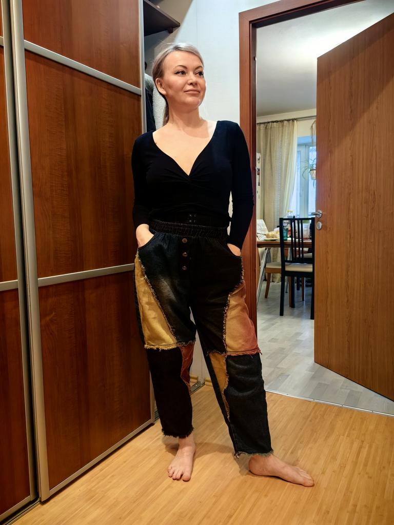 Nice jeans, very original, but the manufacturer added shiny pictures to the dark inserts, they shouldn’t have been there