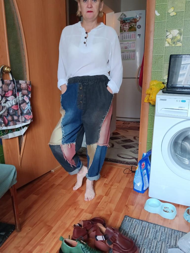 Thin jeans, the seams are neat, you can wear them. But... the colors are different...