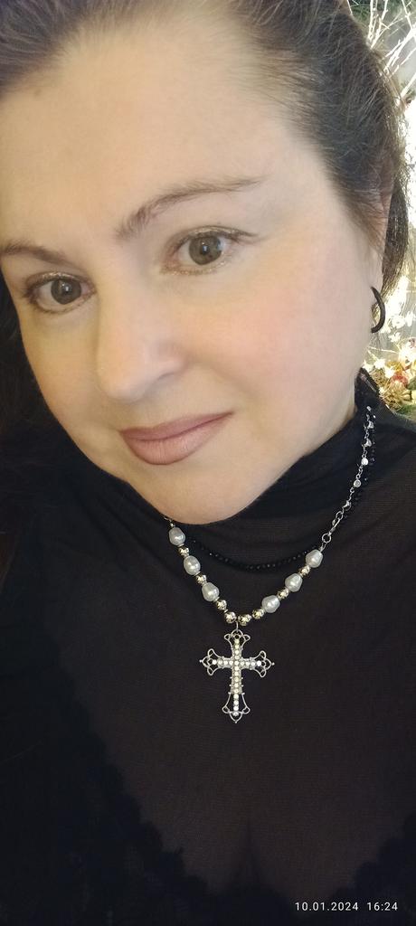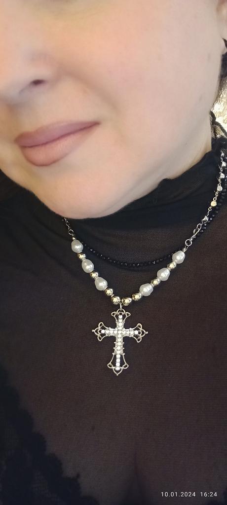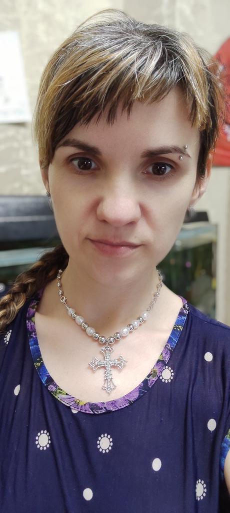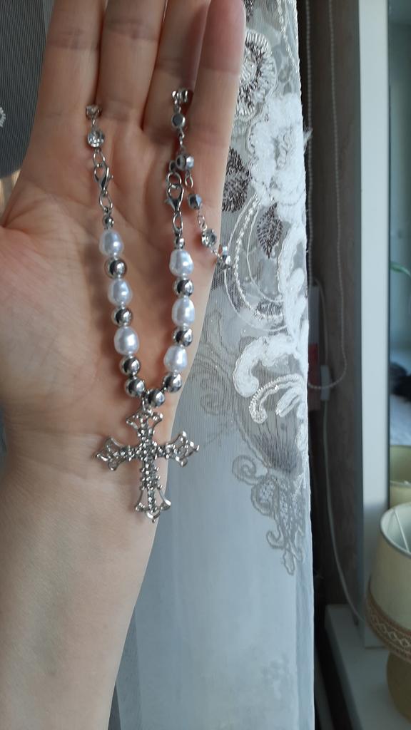 The necklace is magnificent, the cross is large, immediately catches the eye, but short in length. I recommend buying it.