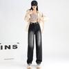 2022 Autumn New Korean Stytle Fashion Women'S Clothing Casual Thin Jeans Loose Wide-Leg Long Trousers Harajuku High Waist Thin
