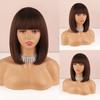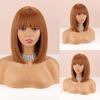 MISS WIG Ombre Brown Blonde Color Women Fashion Short Straight Bob Wig with Bangs Synthetic Fiber Natural Bob Daily Wear Wig