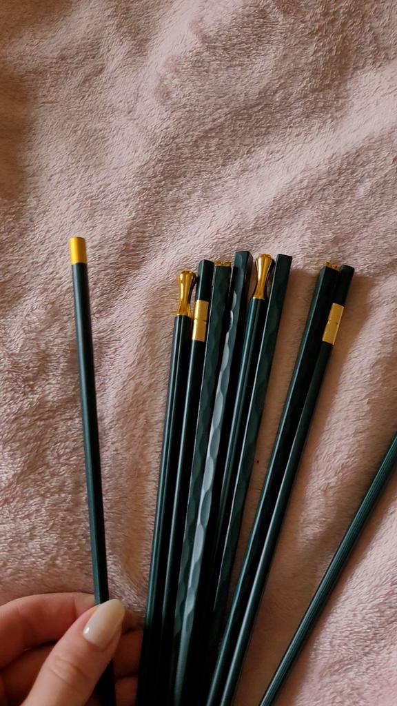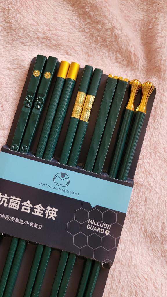 5 Pairs Green Gold Japanese Chinese Chopsticks Eating Food Sushi Sticks Reusable Alloy Korean Chopsticks Set Healthy Kitchen Tableware