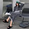 Xitao Knitted Two Piece Set Tassel Striped Full Sleeve Top Skirt Women FBB1498