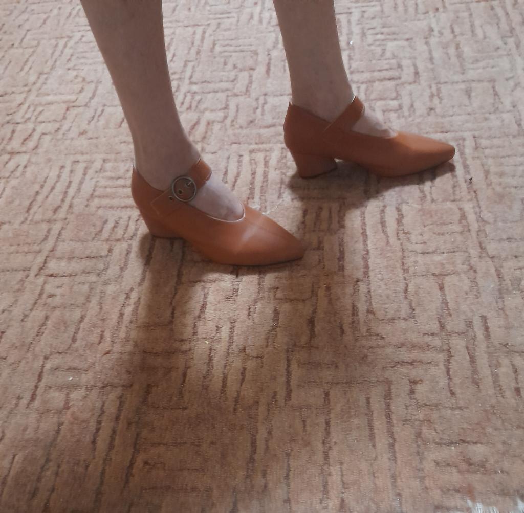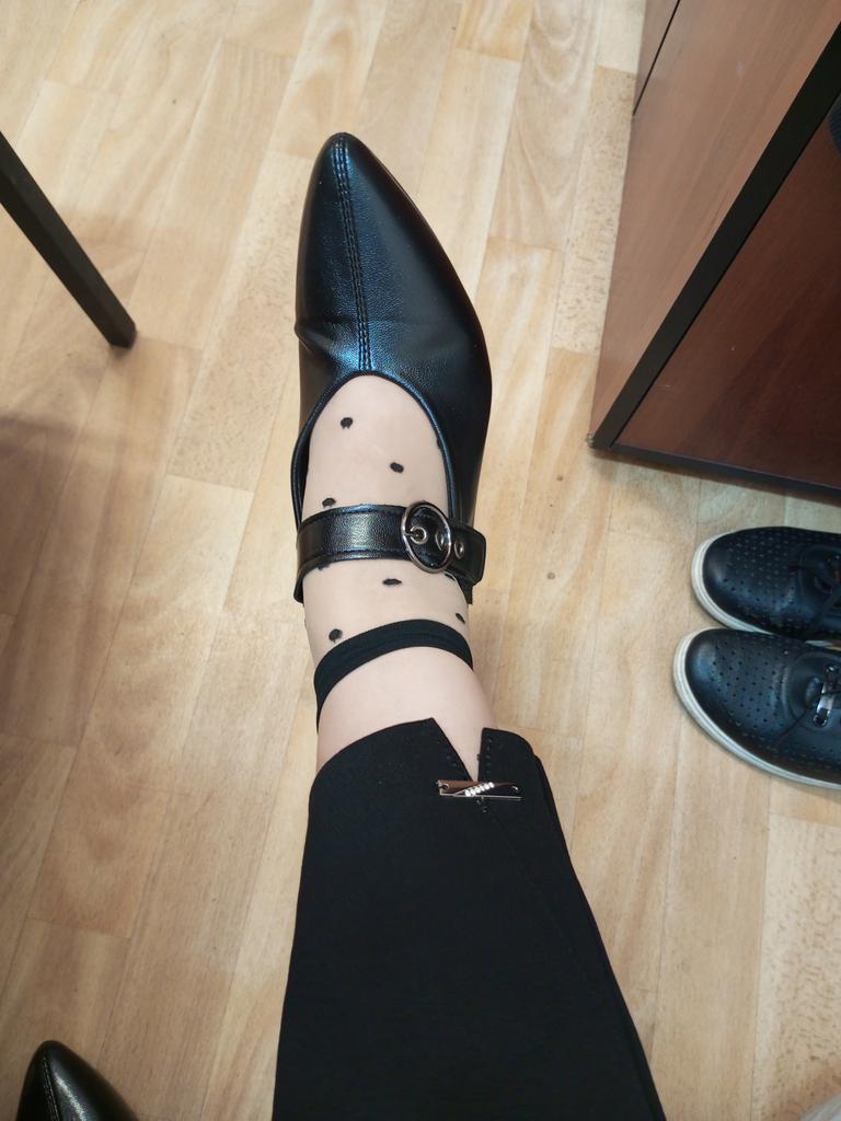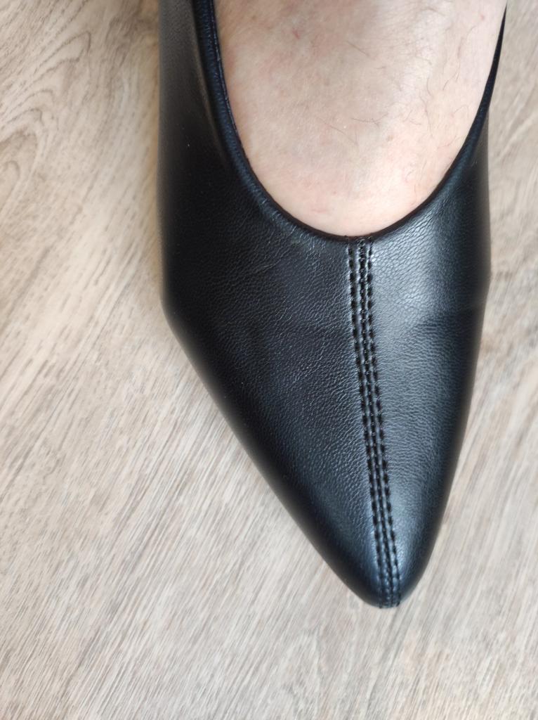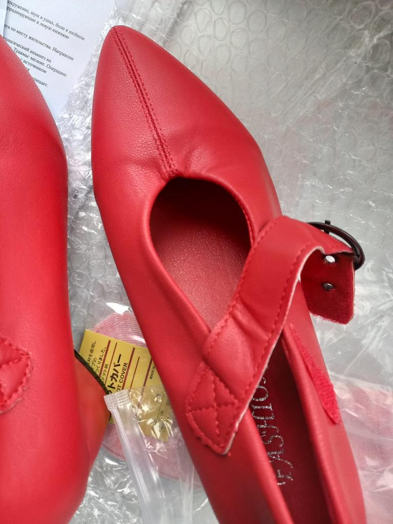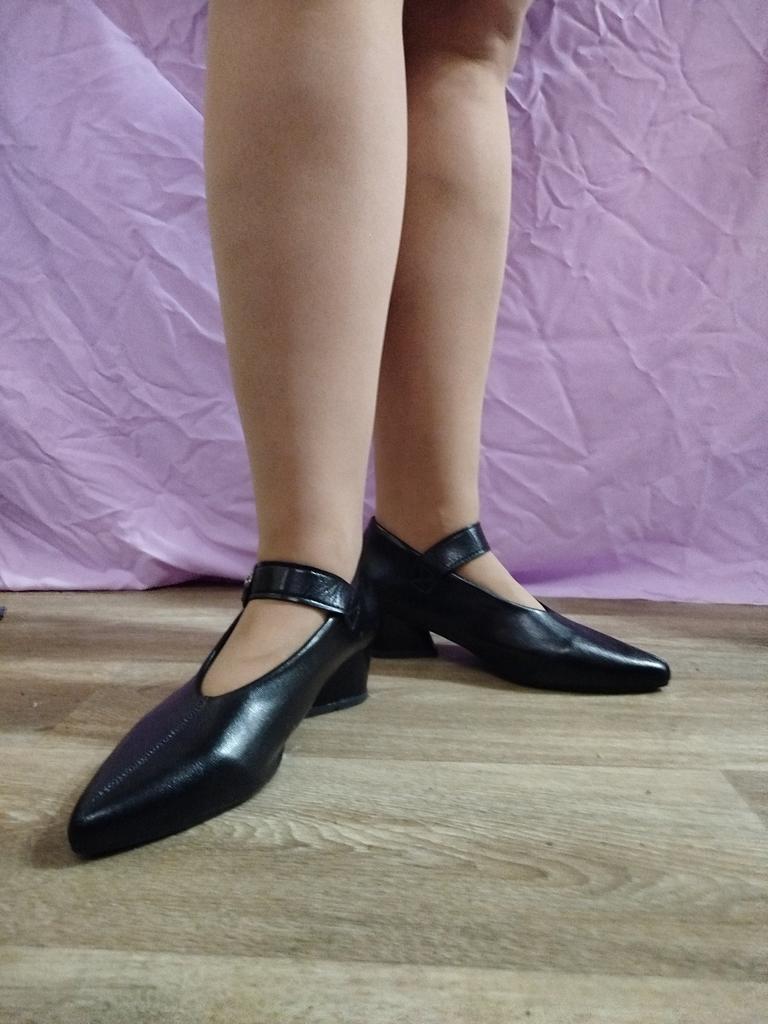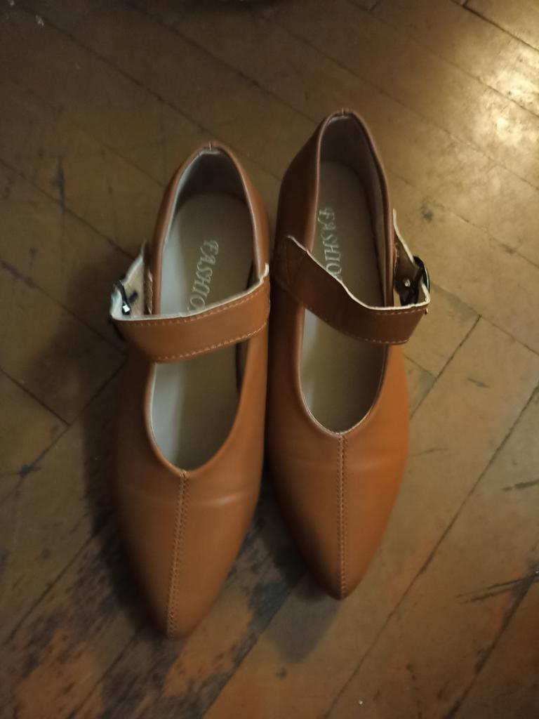 The shoes are successful, size 43 fit 40 (loose fit). Soft, comfortable. But - the strap with the buckle is short. It is designed for a foot with a very low instep. The pointed toe starts to be felt by the evening when worn. Conclusion: the shoes are for a narrow foot with a low instep, the feet should not be prone to swelling. The straps had to be cut off, they did not fit a high instep. The heel is comfortable. A pleasant bonus was the socks. Thank you!
