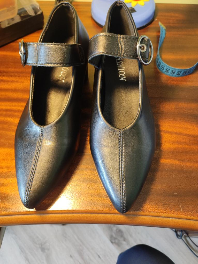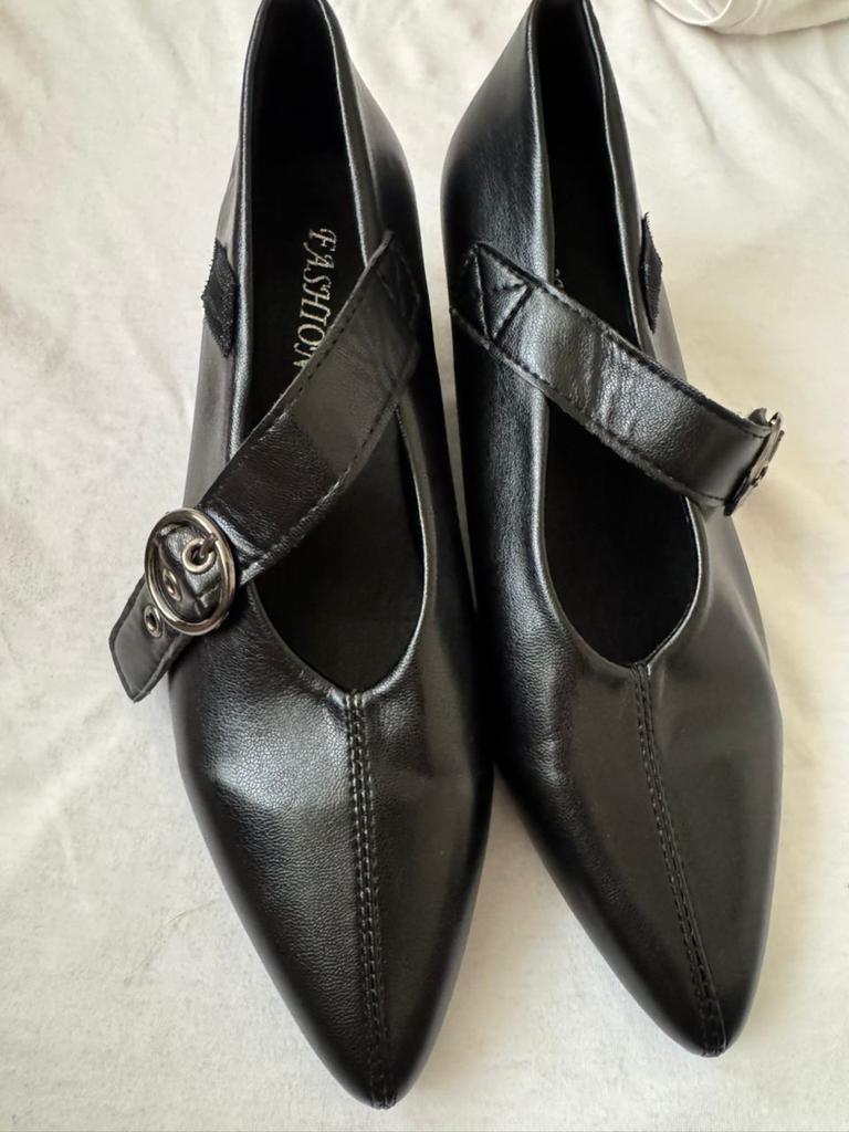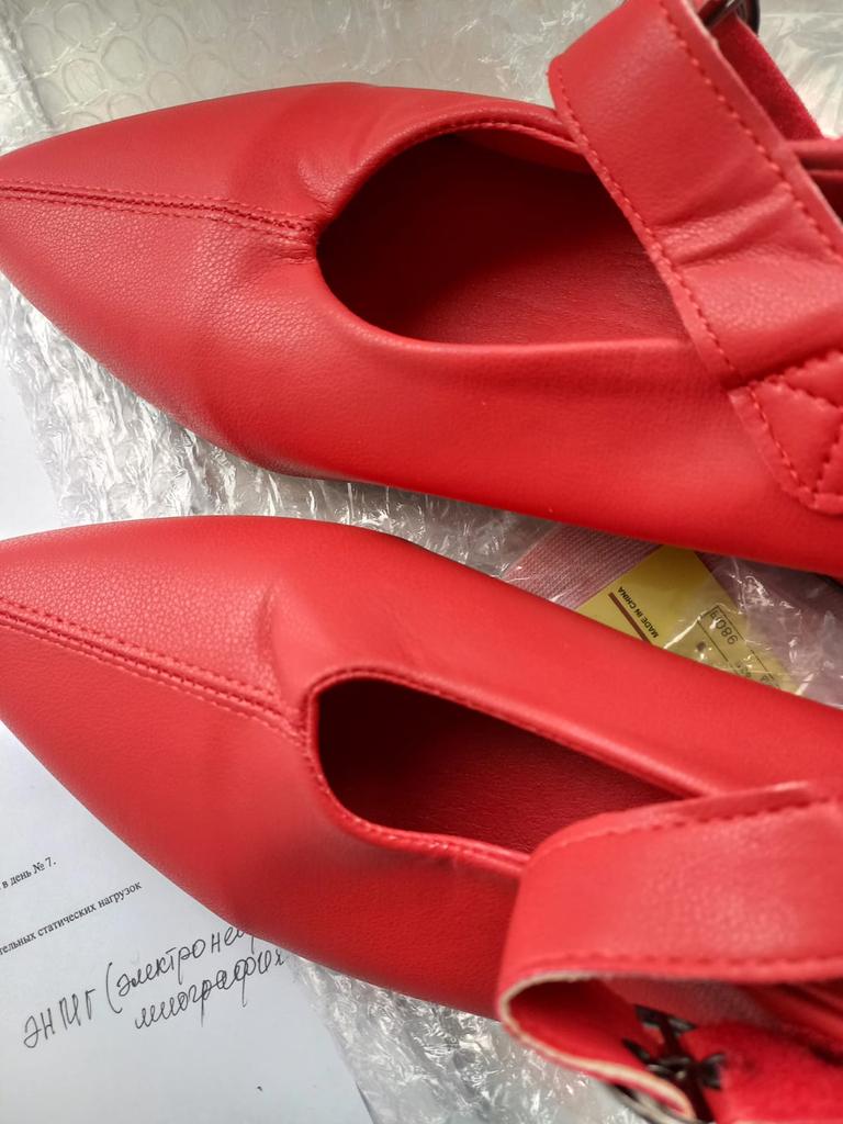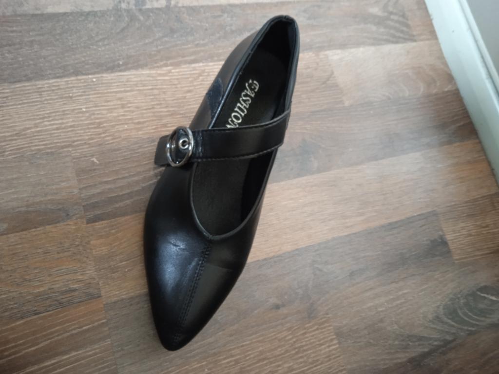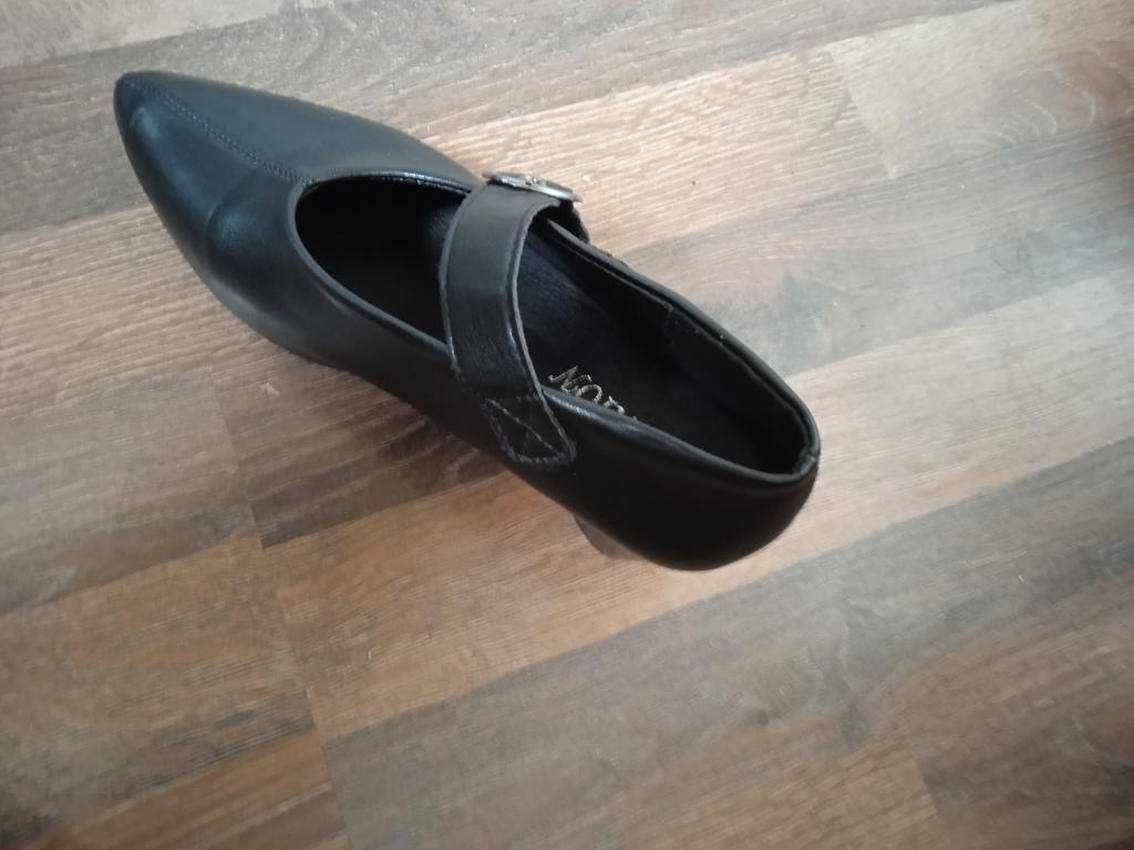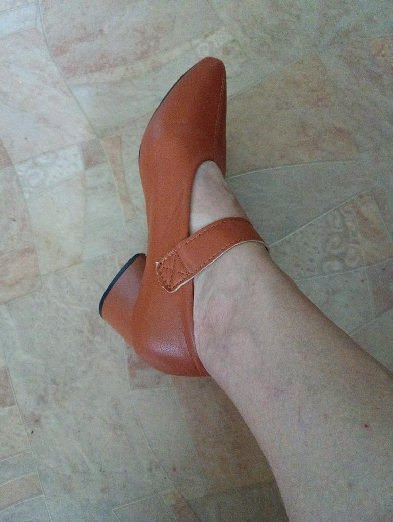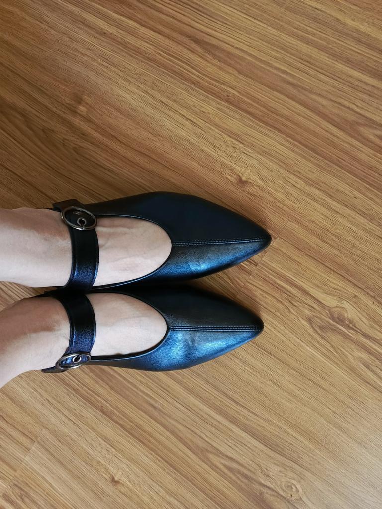 The shoes are successful, size 43 fit 40 (loose fit). Soft, comfortable. But - the strap with the buckle is short. It is designed for a foot with a very low instep. The pointed toe starts to be felt by the evening when worn. Conclusion: the shoes are for a narrow foot with a low instep, the feet should not be prone to swelling. The straps had to be cut off, they did not fit a high instep. The heel is comfortable. A pleasant bonus was the socks. Thank you!