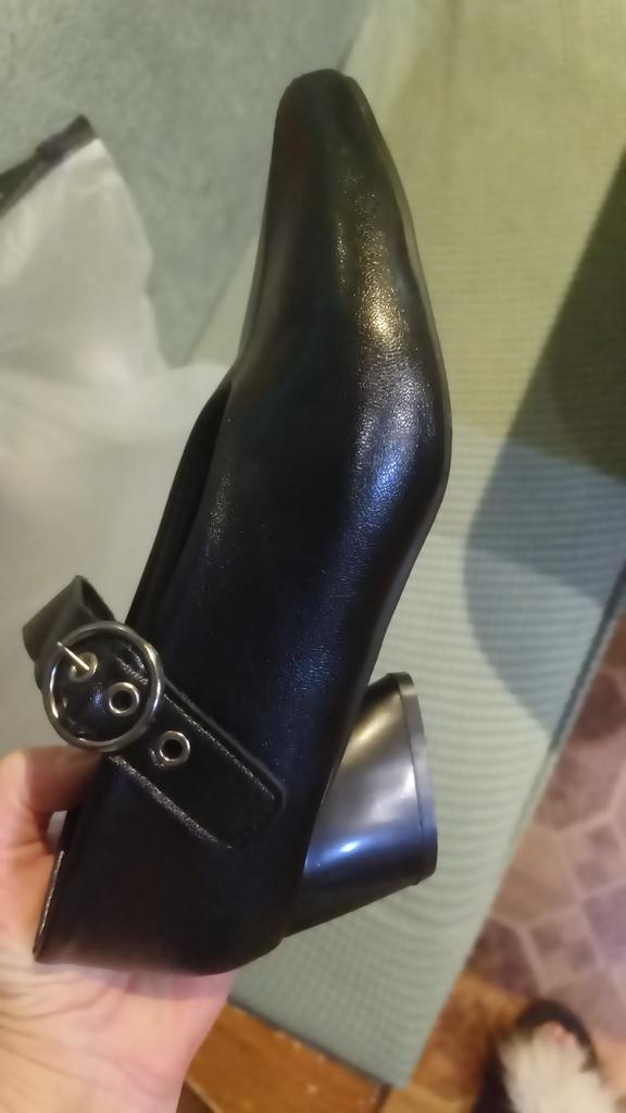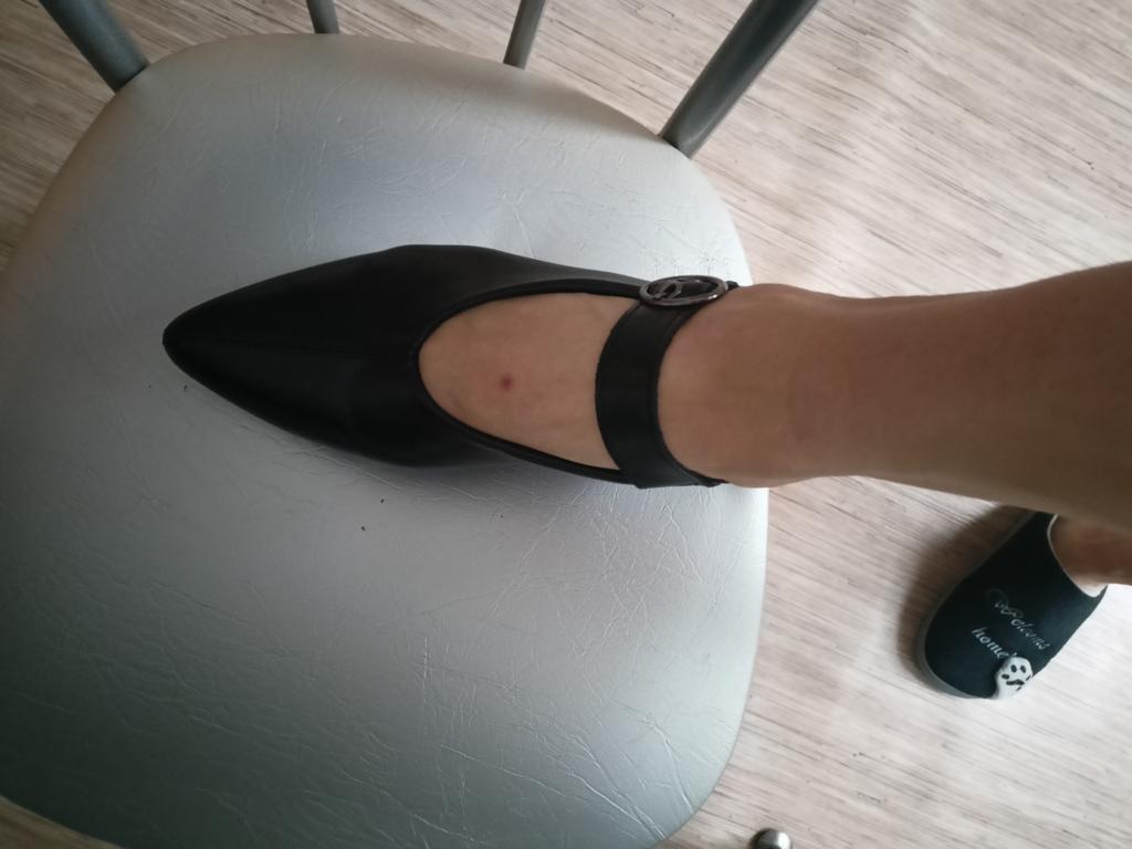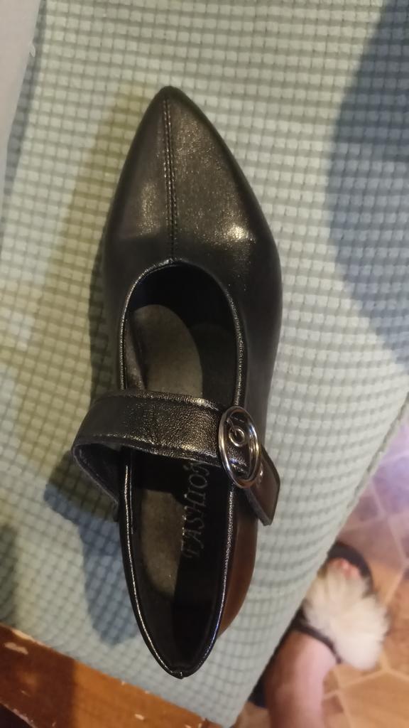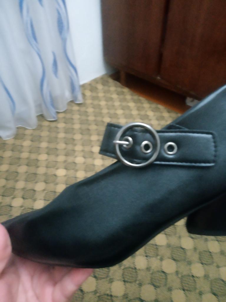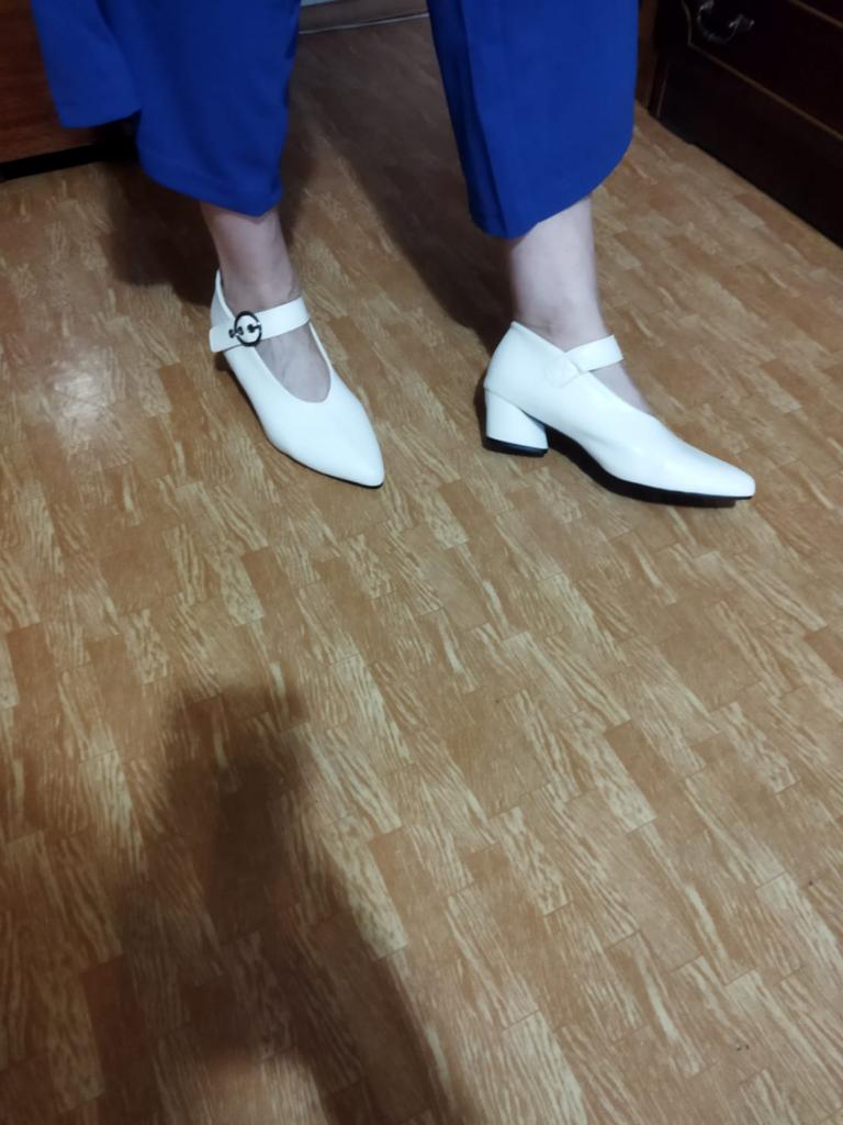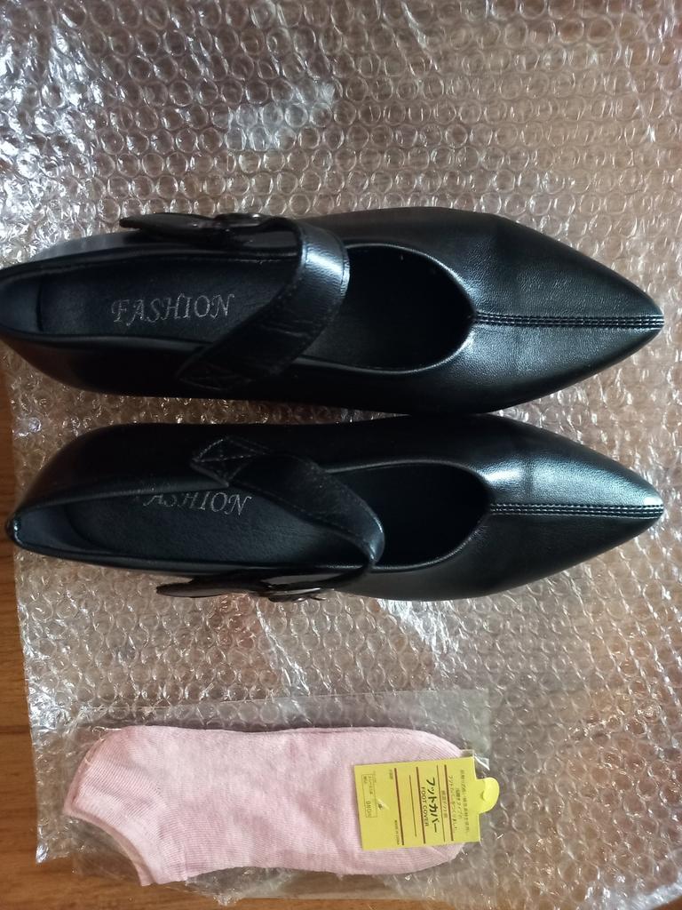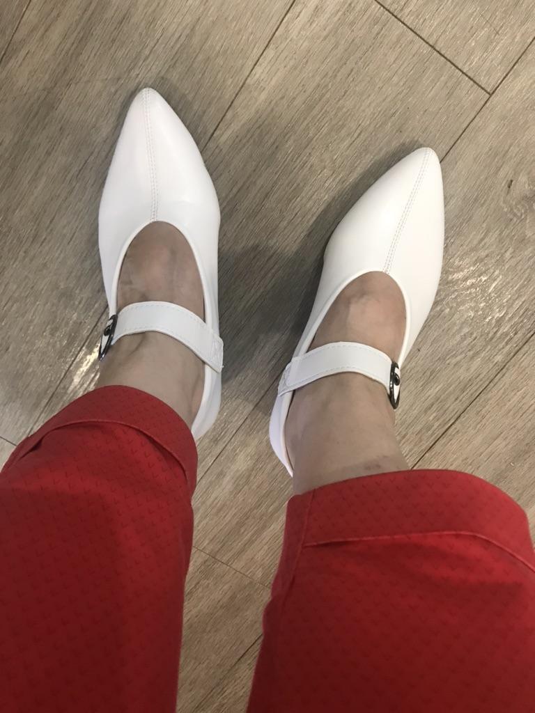 The shoes are successful, size 43 fit 40 (loose fit). Soft, comfortable. But - the strap with the buckle is short. It is designed for a foot with a very low instep. The pointed toe starts to be felt by the evening when worn. Conclusion: the shoes are for a narrow foot with a low instep, the feet should not be prone to swelling. The straps had to be cut off, they did not fit a high instep. The heel is comfortable. A pleasant bonus was the socks. Thank you!