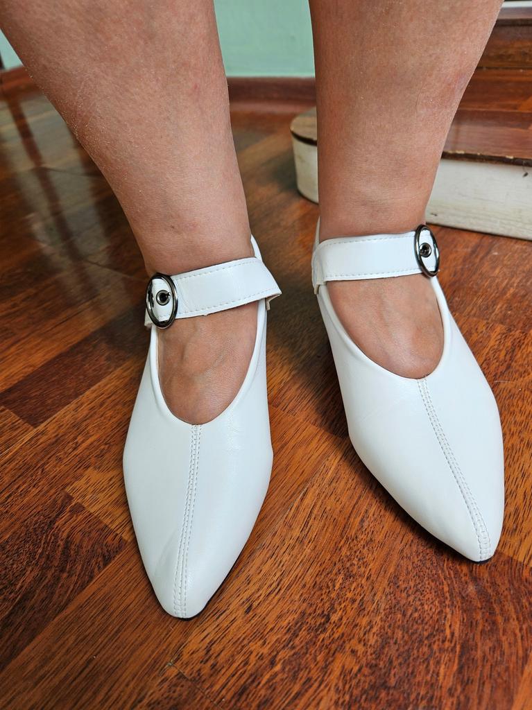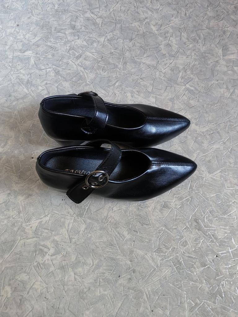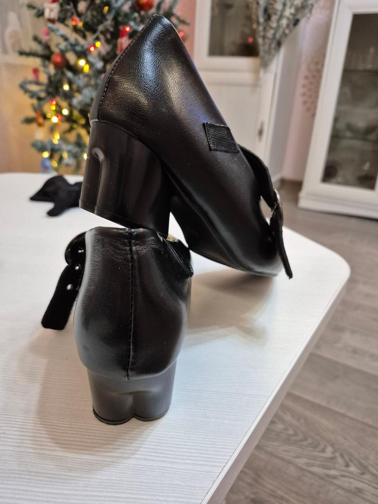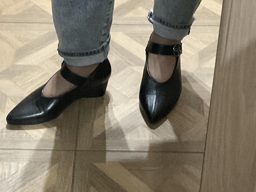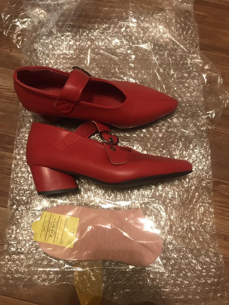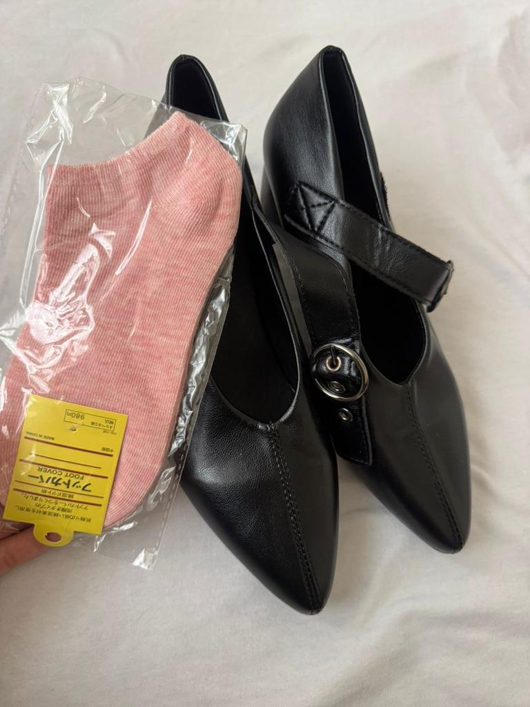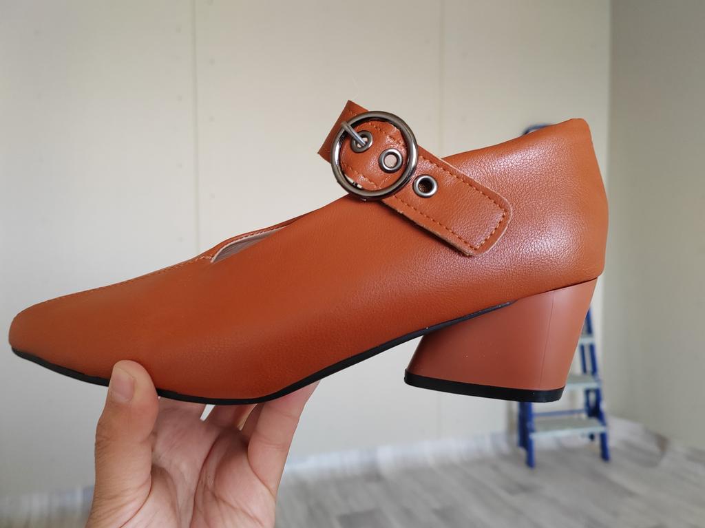 The shoes are successful, size 43 fit 40 (loose fit). Soft, comfortable. But - the strap with the buckle is short. It is designed for a foot with a very low instep. The pointed toe starts to be felt by the evening when worn. Conclusion: the shoes are for a narrow foot with a low instep, the feet should not be prone to swelling. The straps had to be cut off, they did not fit a high instep. The heel is comfortable. A pleasant bonus was the socks. Thank you!