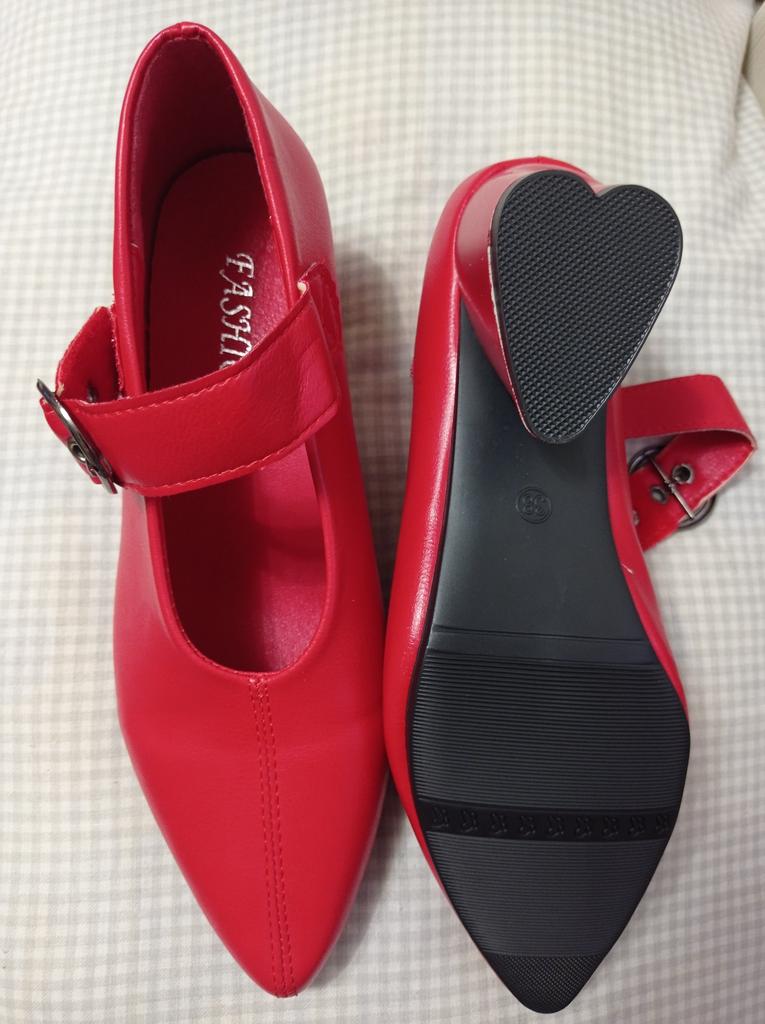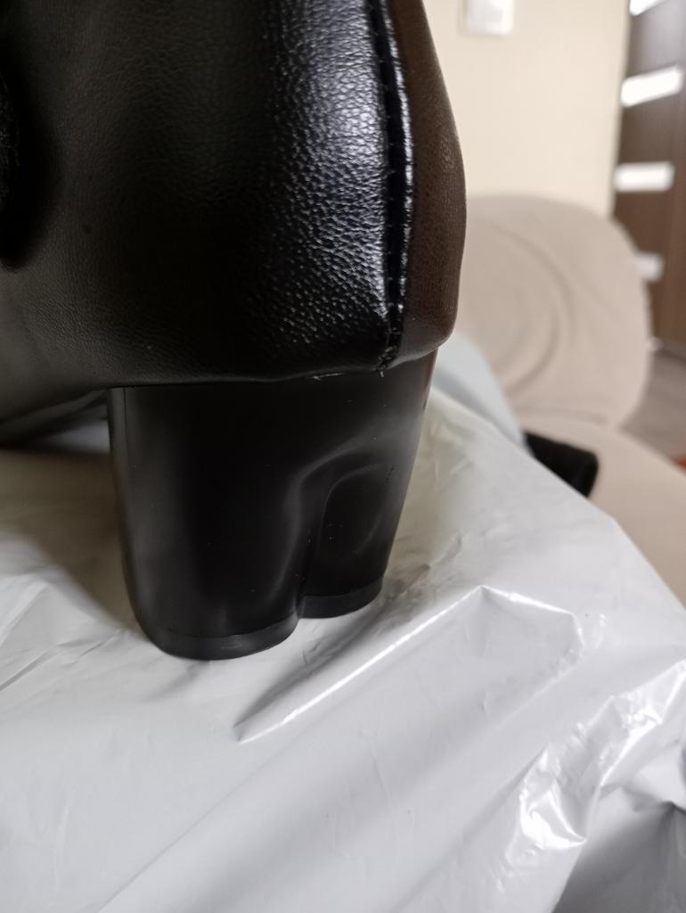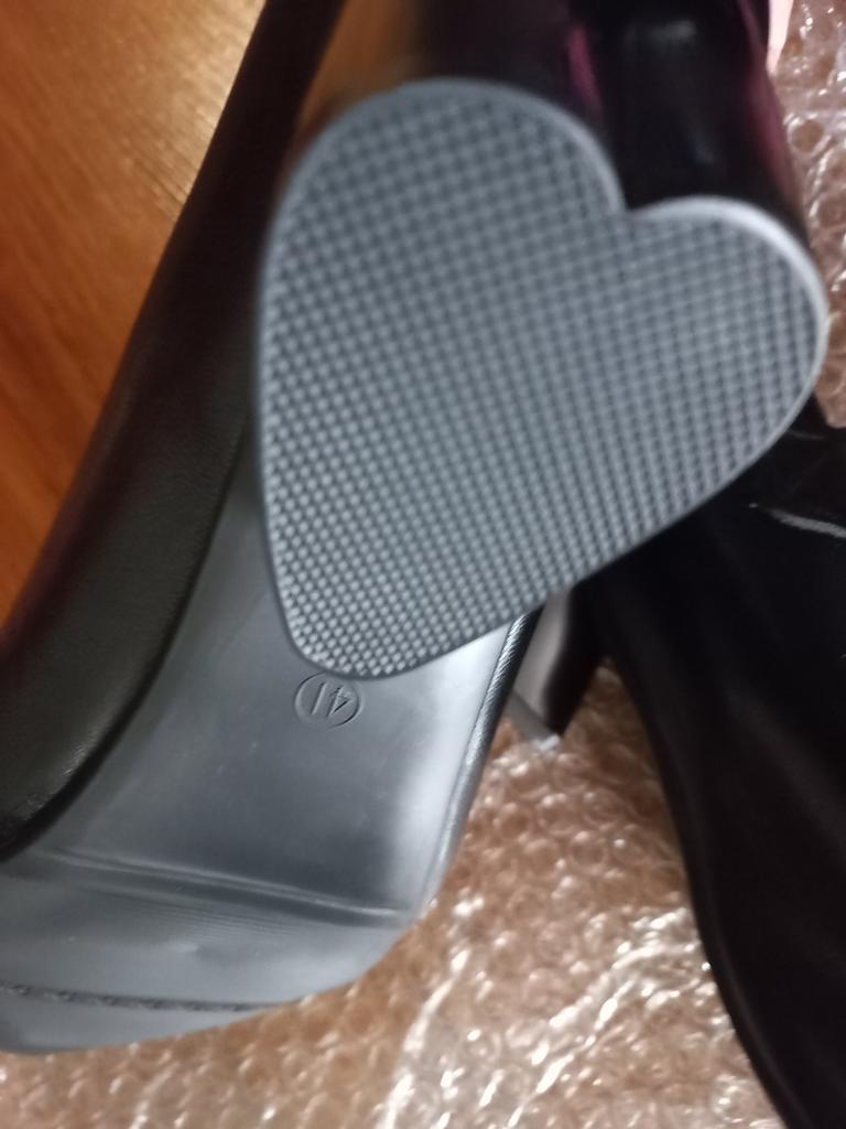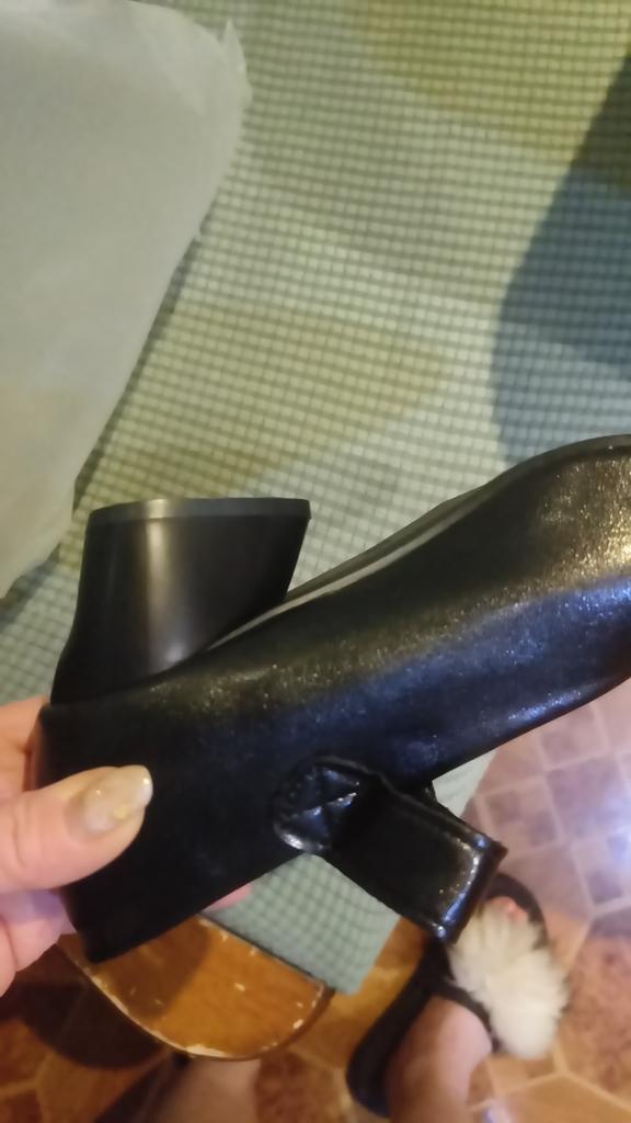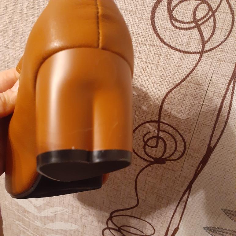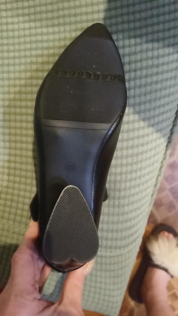 The shoes are not bad, they look neat on the foot. Size 40 fit for a 38 size. The only drawback is the heel. Please post photos of the shoes from all sides. The heel is heart-shaped from the bottom, and the heel itself is split at the back, which doesn't look like a heart, but like a completely different body part, in the best case associated with a hoof. If I had seen this heel initially, I wouldn't have ordered them. If they had made it a regular round heel, narrowed in the middle, it would have been original and interesting. A nice bonus - socks as a gift.