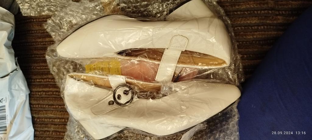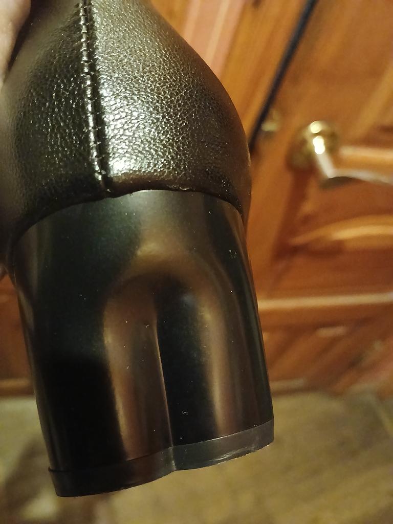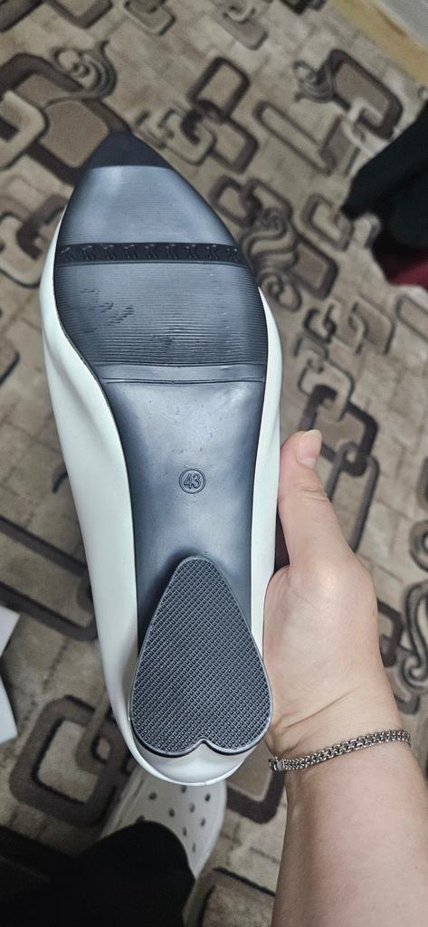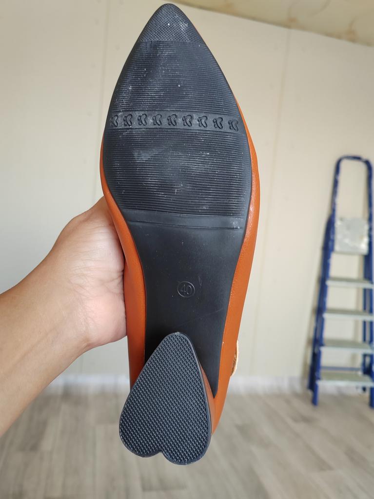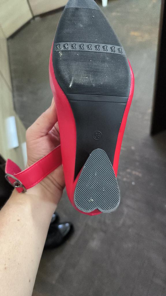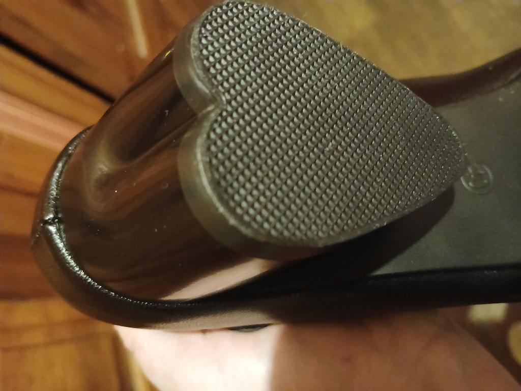The shoes are not bad, they look neat on the foot. Size 40 fit for a 38 size. The only drawback is the heel. Please post photos of the shoes from all sides. The heel is heart-shaped from the bottom, and the heel itself is split at the back, which doesn't look like a heart, but like a completely different body part, in the best case associated with a hoof. If I had seen this heel initially, I wouldn't have ordered them. If they had made it a regular round heel, narrowed in the middle, it would have been original and interesting. A nice bonus - socks as a gift.