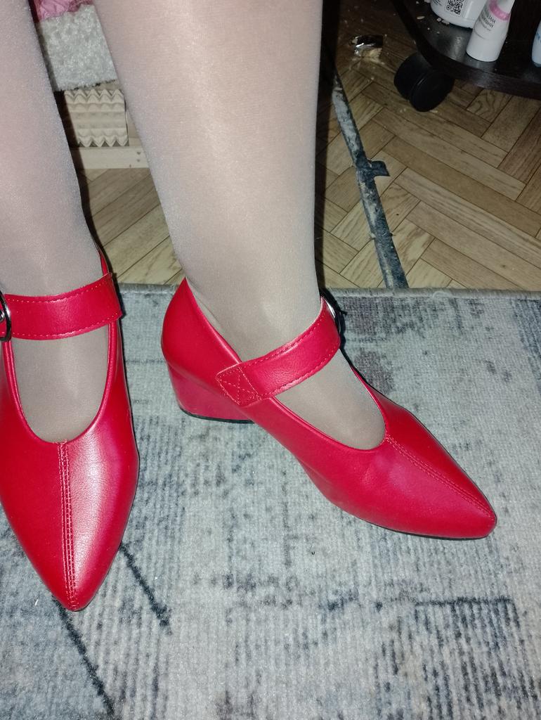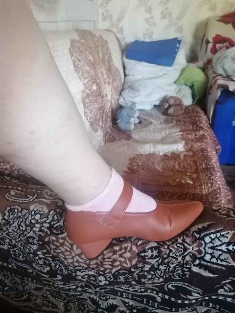 Very nice shoes. Size 36 fits my wide foot size 35 perfectly. I saw in the comments that the heel is heart-shaped, but I apparently didn't pay attention to it in the photo, in general, the heel from behind looks very interesting, either it looks like hooves or something else 🤣. They also included socks as a gift, nice