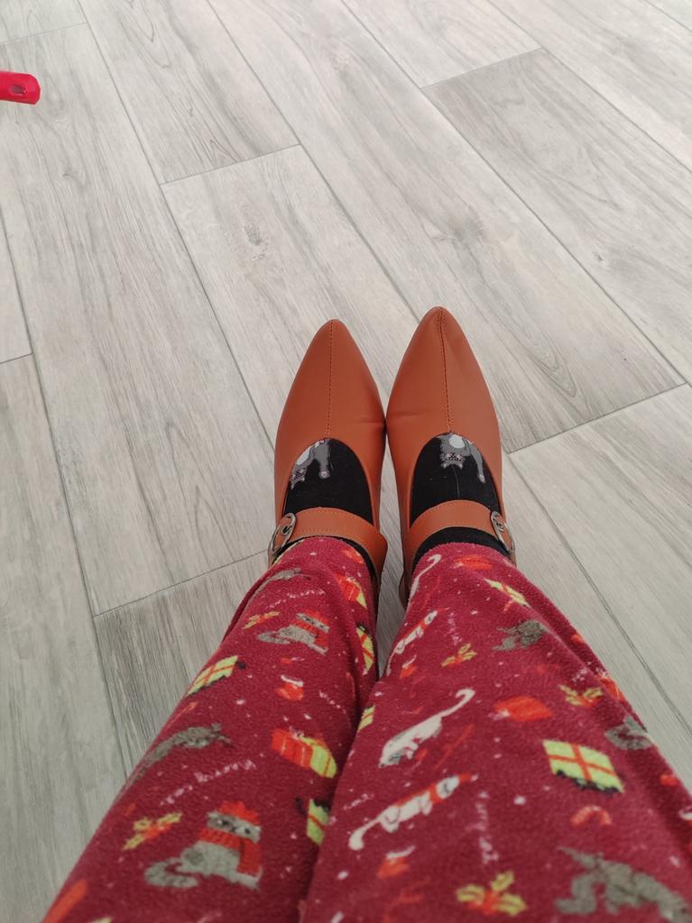 The shoes are funny, but for this price they are suitable. They have a funny split heel at the back that resembles hooves. Fits 24.5 cm. Socks were included as a gift, thank you!
