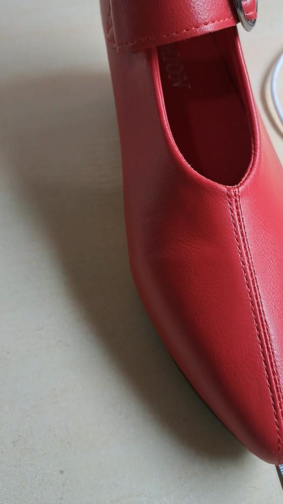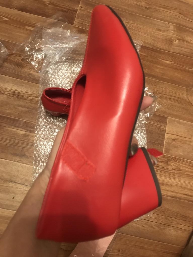The shoes are not bad, the color is a very beautiful red, but the strap is a bit short although my foot is narrow,
