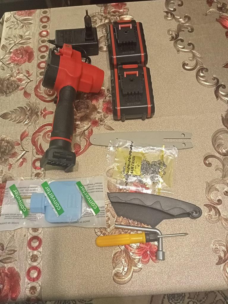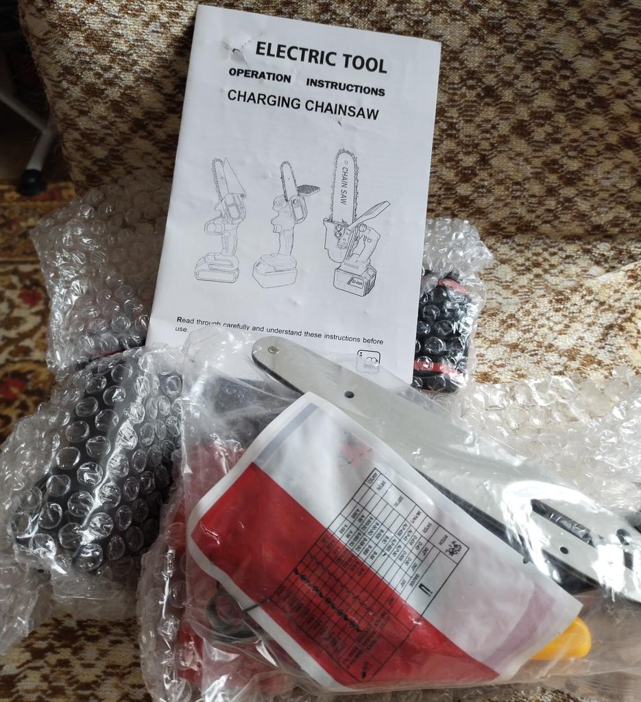 I received the saw and assembled it. There is no key included, the package is full of holes. At idle it works without problems. I tried it on a small piece of wood; with a hand saw I could have cut it off faster and better.